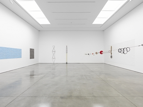 Lower ground floor of the Jac Leirner exhibition. Image via www.whitecube.com.