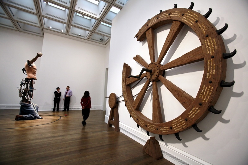 Entitled Michael Landy: Saints Alive, the exhibition is exactly what it says on the tin. Saints from a multitude of paintings are deconstructed and remoulded into kinetic sculptures about three metres high. Since they are kinetic sculptures, it must mean they can move – and they do! Below each work is a foot pedal which visitors can step on to ‘activate’ the sculptures.