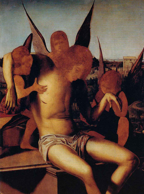 Antonello da Messina, Dead Christ Supported by Three Angels, 1475. Image via www.wordpress.com.
