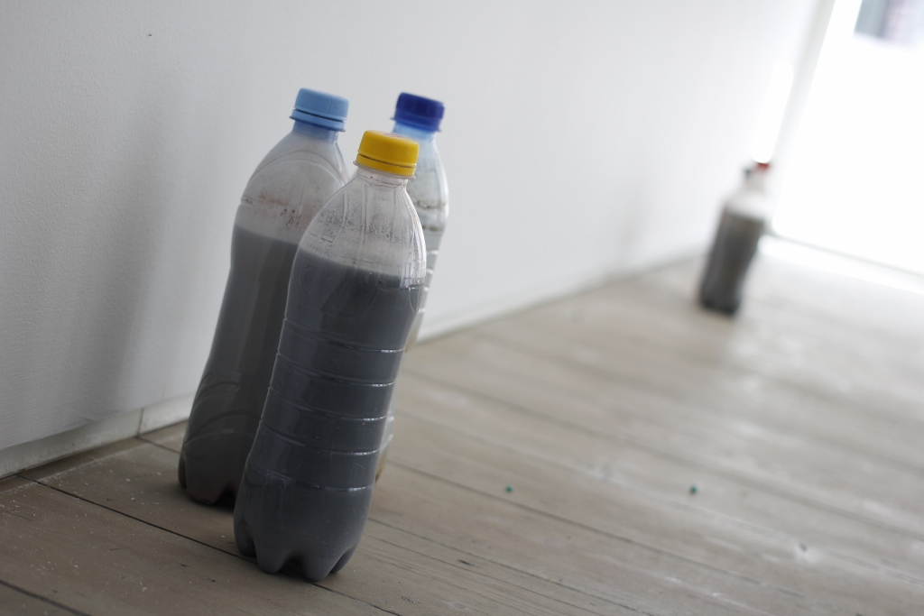 Ivan Novikov’s bottles of contaminated water. Own photograph.