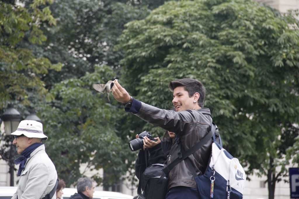 Upon making my way to the Panthéon I was greeted by a familiar face from our group, followed by another who warned us that the church-now-turned-mausoleum was closed until 2pm. We decided to meet other members of our group in front of the façade of Notre-Dame Cathedral. There we took conventional photographs which proved our presence, including some which created an illusion of leaning on either side of its 13th century towers. We also wondered where people were buying pieces of bread to lure the various birds into their hands.