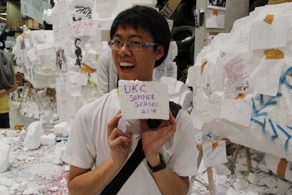 Gives a whole new meaning to the phrase “food for thought”, doesn’t it? In this case, food is thought, and we feed it into Hirschhorn’s piece to keep it alive. As an audience, we are also encouraged to create our own ‘works of art’. This took the form of drawings, quotes, printed images and the best part: lots and lots of polystyrene. This led to much polystyrene-throwing and the turning of our young ‘responsible’ adults into out-of-control reckless children. One of the girls even admitted that “it was like being a child again.”