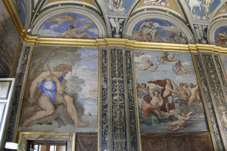 Inside the Villa Farnesina, Rome, where Sebastiano’s Polyphemus (1512) hangs beside Raphael’s Galatea (1511-12).