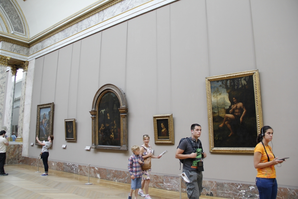 Leaving the hostel at around 8:30am, five of us headed up to the Musée du Louvre to join the fast-growing queues of tourists. The line wasn’t as time-consuming as we had originally thought but I must say the organisation was rather terrible. Nevertheless, we made it inside I.M. Pei’s pyramidal steel-and-glass structure, took the escalator down to the grand foyer, known as the Napoleon Hall, and went straight for the museum’s poster-girl, the Mona Lisa (1503-5) – everyone else was still queuing for admission tickets so we had a head-start. Psst…it’s in the Denon wing.