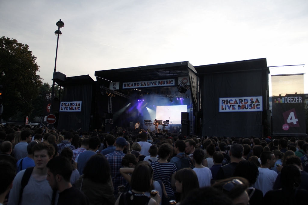 It wasn’t long after we arrived at the hostel until we came back out again. In the spirit of the Fête de la Musique, most of us headed out to Place Denfert-Rochereau where a large temporary stage awaited us, already filled with thousands of people. There was a large mixture of ages, from adolescents to the elderly. Being naturally British, a festival wasn’t a festival without the consumption of alcohol, so we went to a nearby store for wine and beer – and my dinner, consisting largely of chocolate brioches.