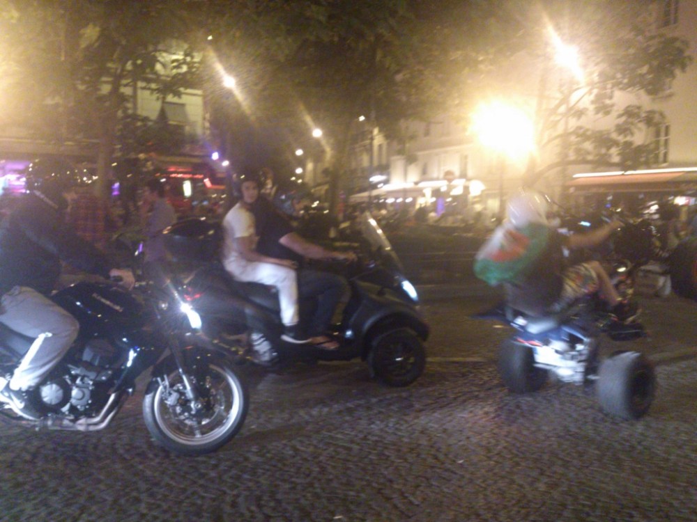 On the way back, we bumped into a couple of new-found friends from the hostel outside a pub called Le Requin Chagrin. We had a quick chat with them before being disrupted by a display of quad-bikers and ordinary bikers performing wheelies, circling Place de la Contrescarpe before heading down the way we came. Fortunately, I wasn’t the only one baffled by this unexpected occurrence, as I made eye contact with a chuckling American couple a few tables away. By this time, everyone else from the group had left early, leaving myself, the foodie, and our only drama student to socialise.
