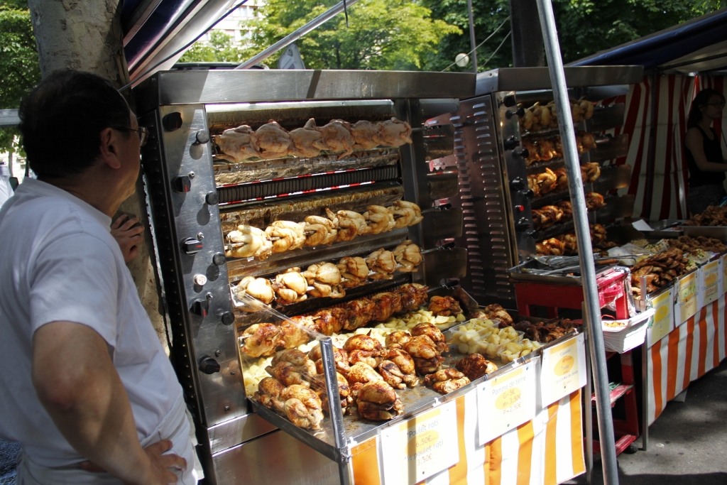Two rows of trees line the pavement. A young man turns into a corner holding a bouquet of flowers, probably on the way to the Centre Hospitalier Sainte-Anne. A four-or-five-year-old little boy rides a small bicycle with training wheels, his middle-aged parents strolling behind him. Finally, two elderly men converse on the green benches that are scattered along this street, with a perfect mix of light and shade. It wasn’t very long until I reached the Marché Auguste Blanqui, a local village-like market selling a vast variety of food items – all sorts of cheeses, cooked meats (even fresh roast chicken), frozen meats, fruits and vegetables – and household items and clothing. Open every Tuesday, Friday and Sunday, it spans most of the length of the Boulevard Auguste-Blanqui, between Rue Barrault and Place d’Italie – just to clarify, at some point along Boulevard Saint-Jacques it becomes Boulevard Auguste-Blanqui, roughly where the Rue de la Santé is located.