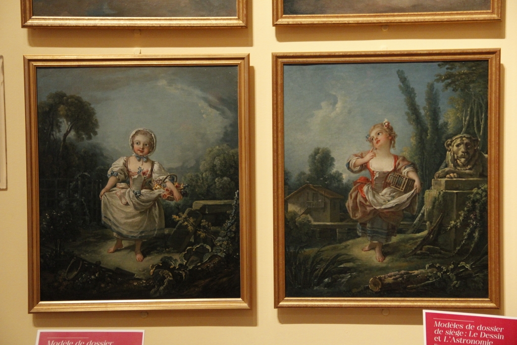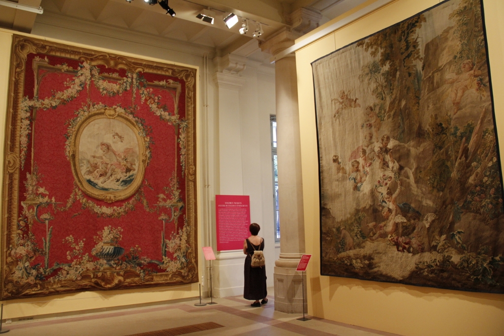 One of the other principal designers for the Gobelins Manufactory (and a favourite artist of mine) was François Boucher who headed the manufactory between 1755 and 1770. Boucher’s work often draws from classical themes, such as his Amours des Dieux series. However, I was particularly drawn to something cuter, a set of painted models depicting little boys and girls dressed as small farmers. The five paintings exhibited were part of a set of 20 made for Madame de Pompadour around 1751-52. They are absolutely adorable! – I really liked the little fisherman and the little bird-tamer.