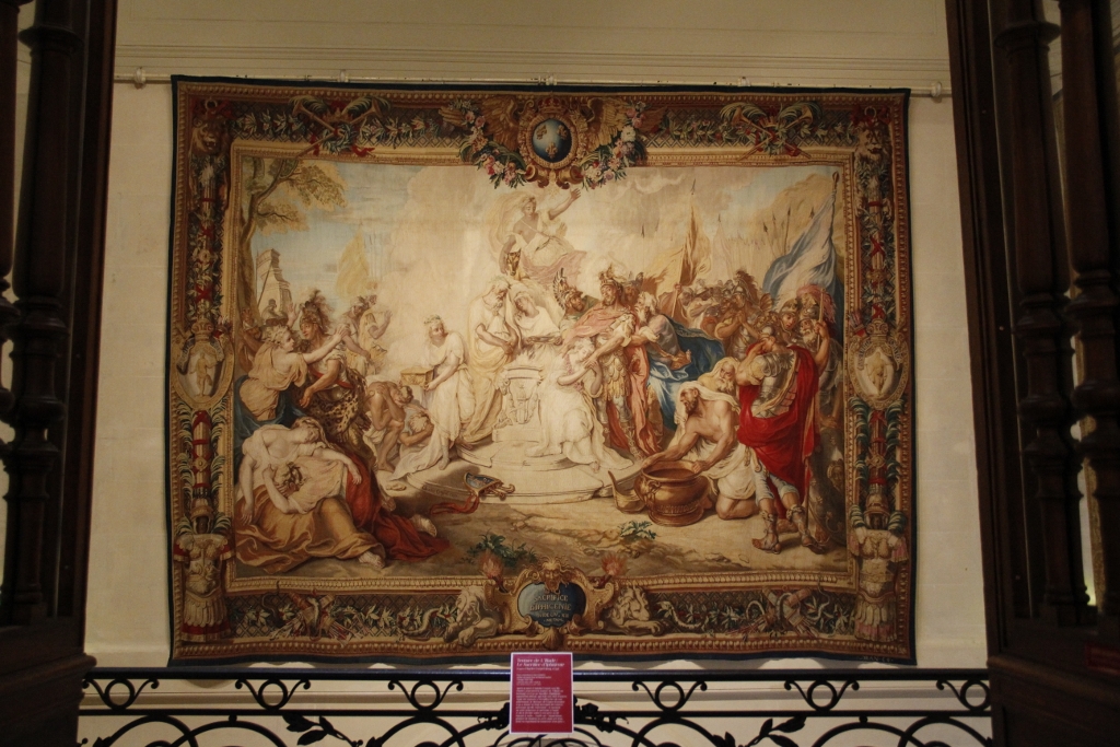 A small display of lithographs show the weaving process step-by-step. In the same section we are presented with a selection of chairs and furnishings made under the general direction of Jean-Baptiste Colbert. It wasn’t surprising to see how the tapestry-making process could be used for furnishings once I saw the depth of the tapestries on display, approximating a very thin 5-10mm each. However, I was even more surprised by the incorporation of this process into formal portraits. From a distance, these tapestry portraits appear like ordinary painted court portraits – trained-eye or not – but once you move in closer all the fine threads reveal themselves like a Van Gogh or Pissarro painting, even a Titian if you want to be mind-blown.