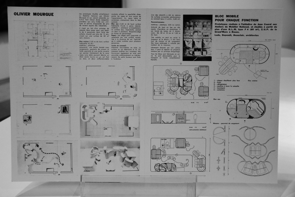 The lower gallery also held a display of Olivier Mourgue’s Bloc Mobile pour Chaque Fonction (‘Movable Block for Each Function’), isolated purpose-built cubicles which can be rearranged in various layouts to create a functioning house that can be constantly altered. Amongst others, there was a movable kitchen, a couple of bedrooms which contained as much space as a large tent, and a block with partitions that placed the toilet, sink and bath/shower in separate cubicles. Mourgue, a French industrial designer, is better known for his contribution to the film 2001: A Space Odyssey (1968) where his Djinn chairs were made famous. The presence of this display did, however, disturb and interrupt the viewing of works in the main exhibition.
