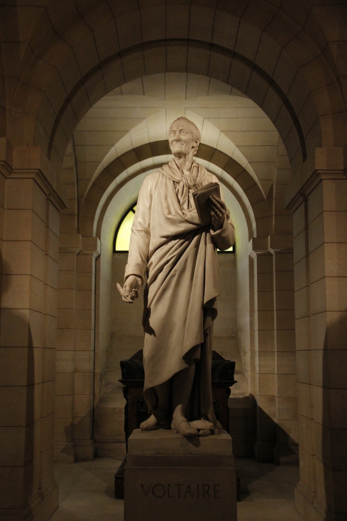 I then visited the crypt, where the most popular tomb was that of the French writer, historian and philosopher François-Marie Arouet, better known by his pseudonym Voltaire adopted in 1718. The pseudonym is an anagram of “AROVET LI”, the Latin spelling of his surname in combination with the initial letters of “le jeune”, meaning “the young”. Voltaire also appears seated on the left of the Panthéon pediment with Jean-Jacques Rousseau, a Gevevan philosopher, writer and composer whose tomb lies directly opposite that of the former.