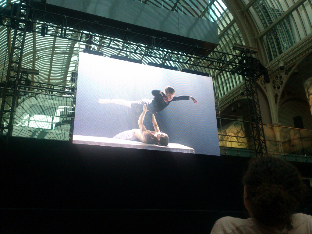 To properly kick-start the evening, a live screening of Sampling the Myth was being broadcasted from the Linbury Studio Theatre to the Paul Hamlyn Hall. This was a mixture of films and live performances revolving around the concept of myth. Some ticket-holding members of the congregation had already made their way there to watch the performances live.