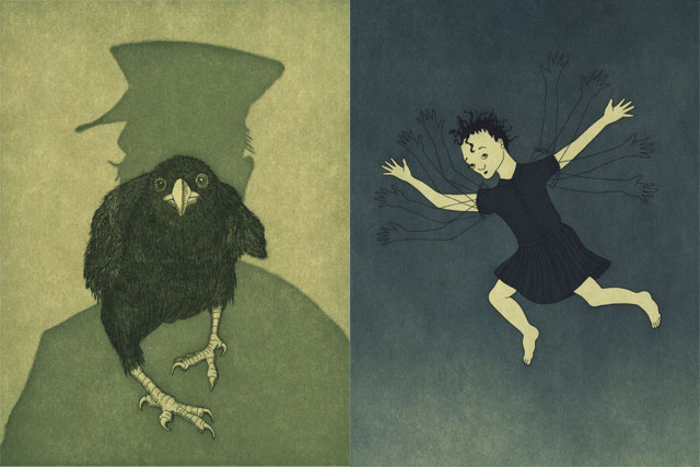 Audrey Niffenegger’s illustrations for Raven Girl. Image via www.roh.org.uk.