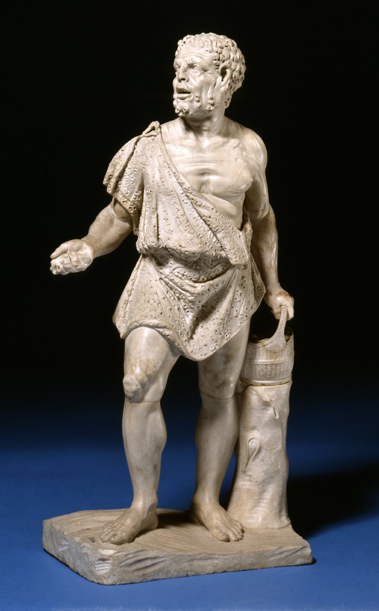 Marble statue of a fisherman selling his wares. Image via www.britishmuseum.org.