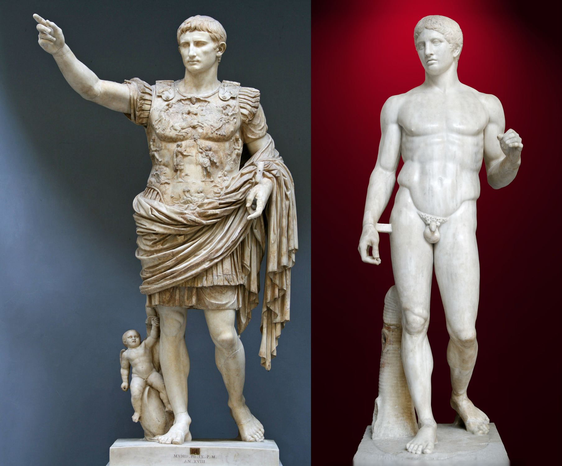 Augustus of Prima Porta (left) and the Doryphoros (right). Images via www.wikipedia.org.