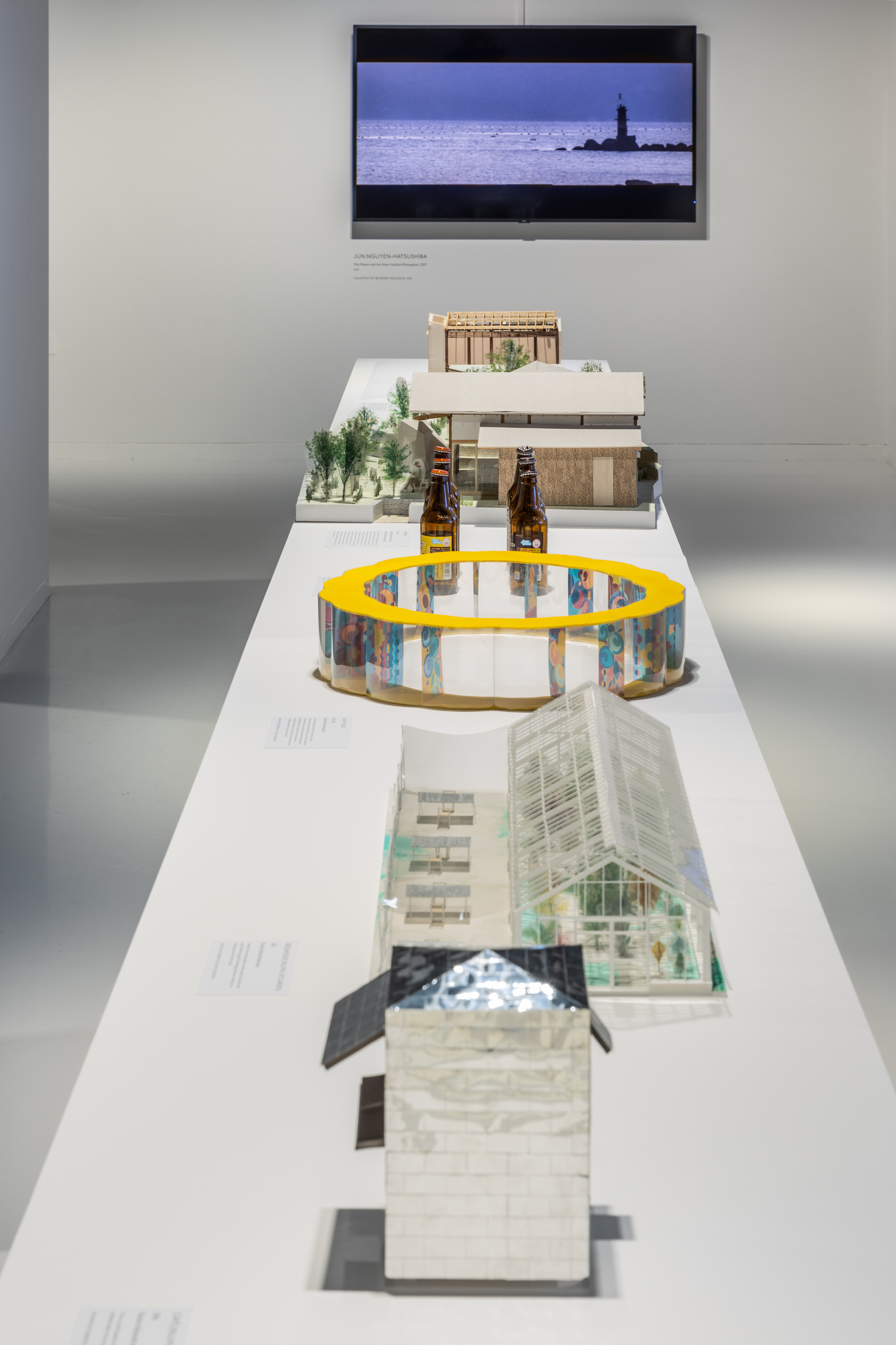 Evoking an island tour, the exhibition features international artworks which were once shown in Inujima’s five pavilions (exhibition galleries), as well as architectural models for buildings on the island. In the centre of the room is a large diorama of the island, complemented on one wall by Homma Takashi’s photographs from the Inujima Landscapes series (2009).