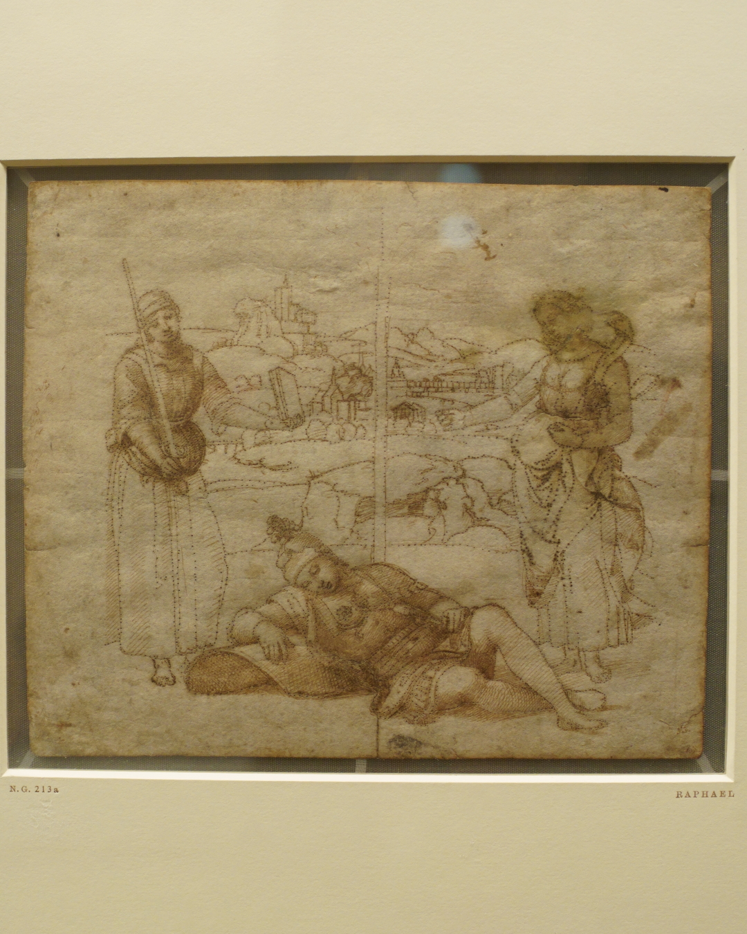 This display also offers quite a broad representation of Raphael’s draughtsmanship, featuring drawings in metalpoint, black and red chalks, and pen and ink/wash.
