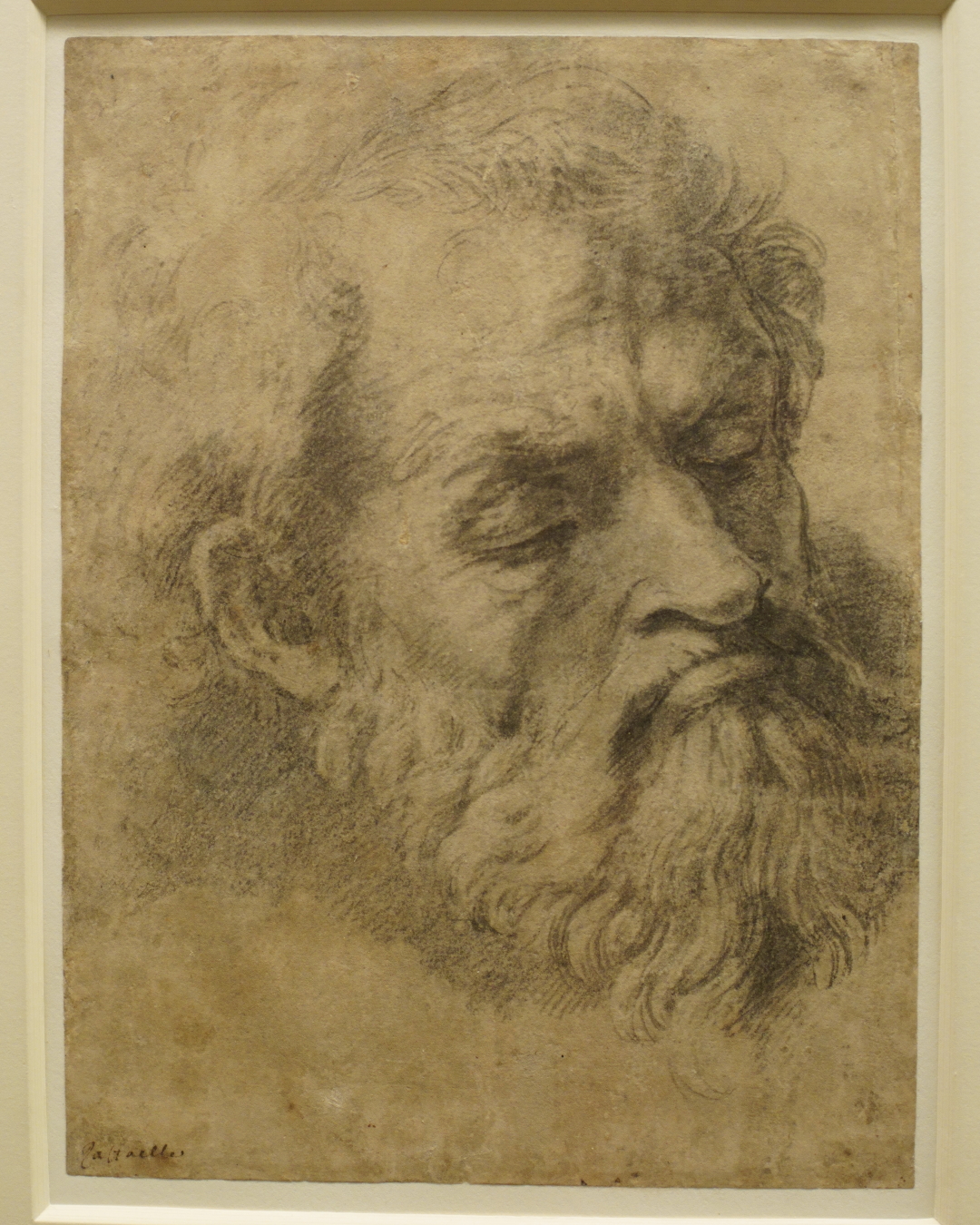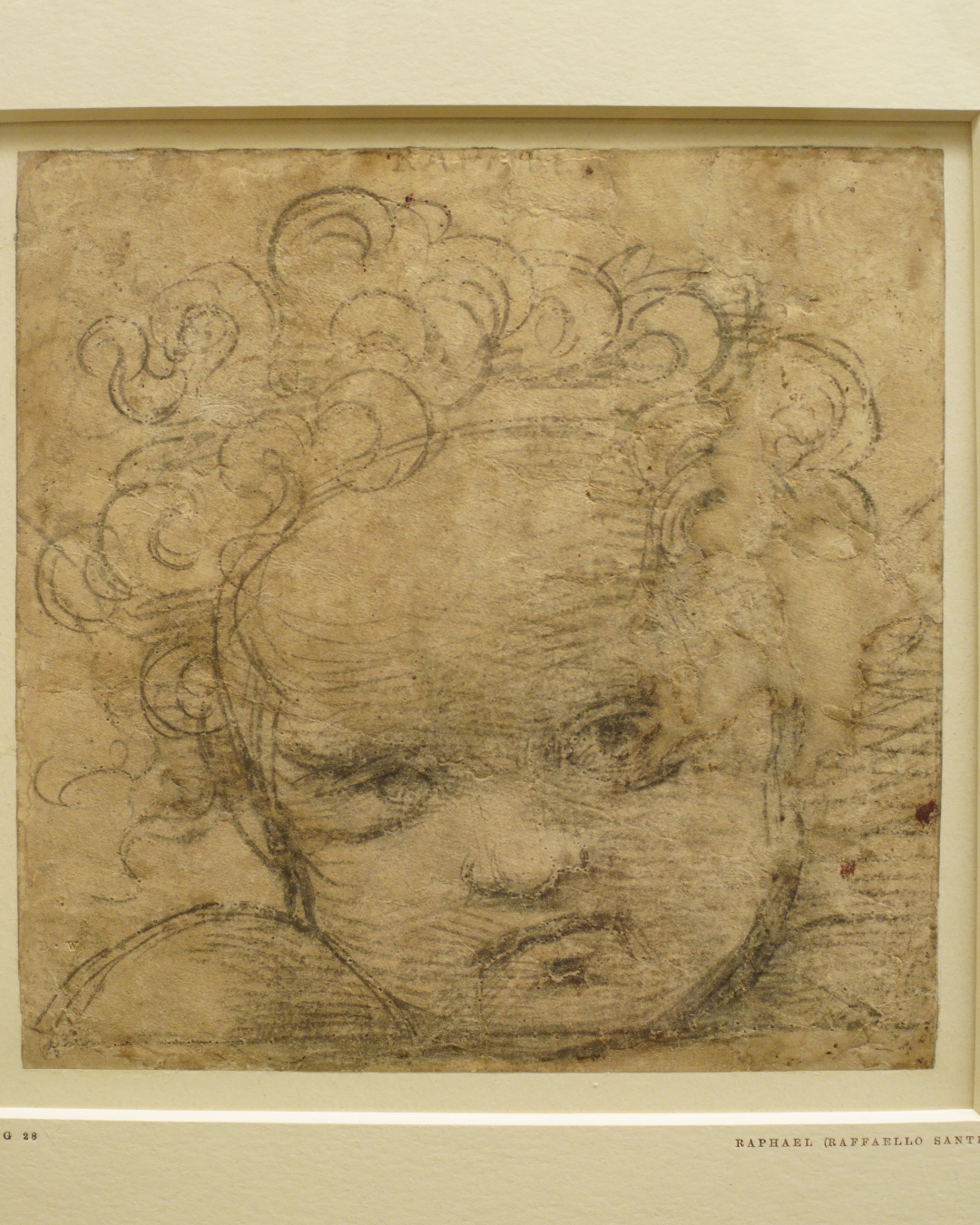These were independent reference drawings based on a transferred design from a normal cartoon, which have then been drawn to a high level of finish to aid with the painting process. Seven of these have survived the test of time for this painting, all heads for figures in the lower half; I’ve seen five so far!