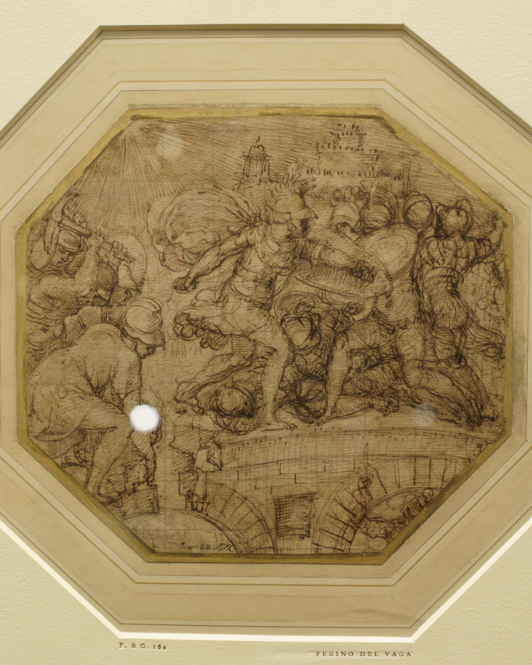 As for Perino del Vaga, a study for the vault of the Loggia degli Eroi in the Villa del Principe (Palazzo di Andrea Doria a Fassolo), Genoa, retains a freshness of his experience with dramatic battle scenes painted by Raphael in the Vatican.
