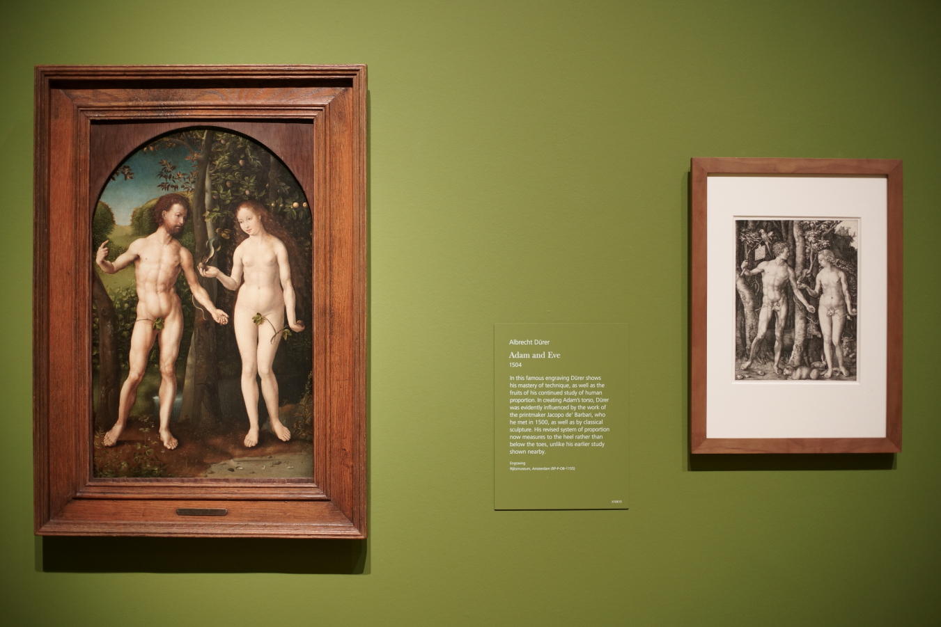 As the exhibition shows, Adam and Eve had a widespread impact on both German and Netherlandish artists. Jan Gossaert made his own pastiche (Museo Nacional Thyssen-Bornemisza, Madrid) and Conrad Meit adapted the group into delicately-carved boxwood figurines (Schloss Friedenstein, Gotha).