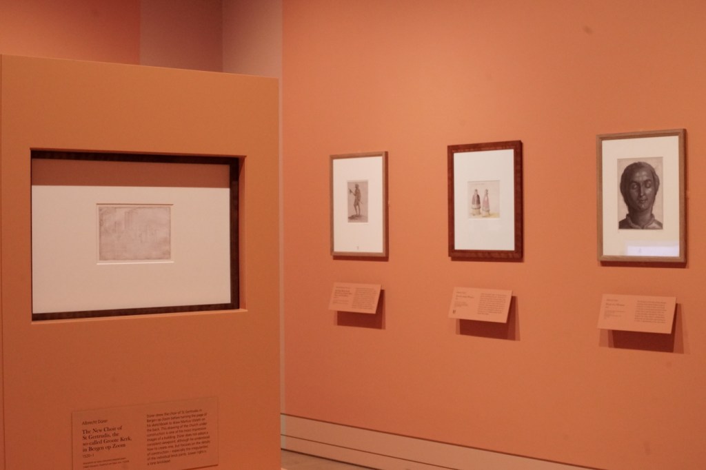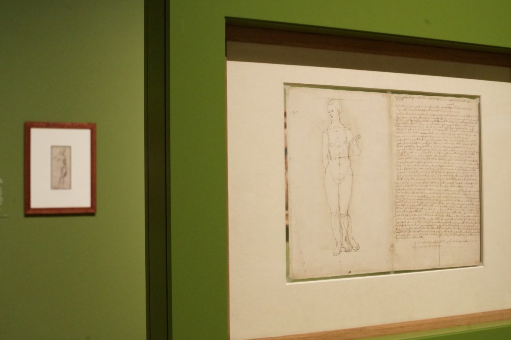 Shown in this room is Jacopo’s painting of A Sparrowhawk (1510s) from the National Gallery collection, which makes logistical sense for inclusion. However, the caption for it actually refers to Jacopo’s engravings of male and female nudes, and that he ‘did not want to show his principles to me [Dürer] clearly’ regarding representing human proportion.