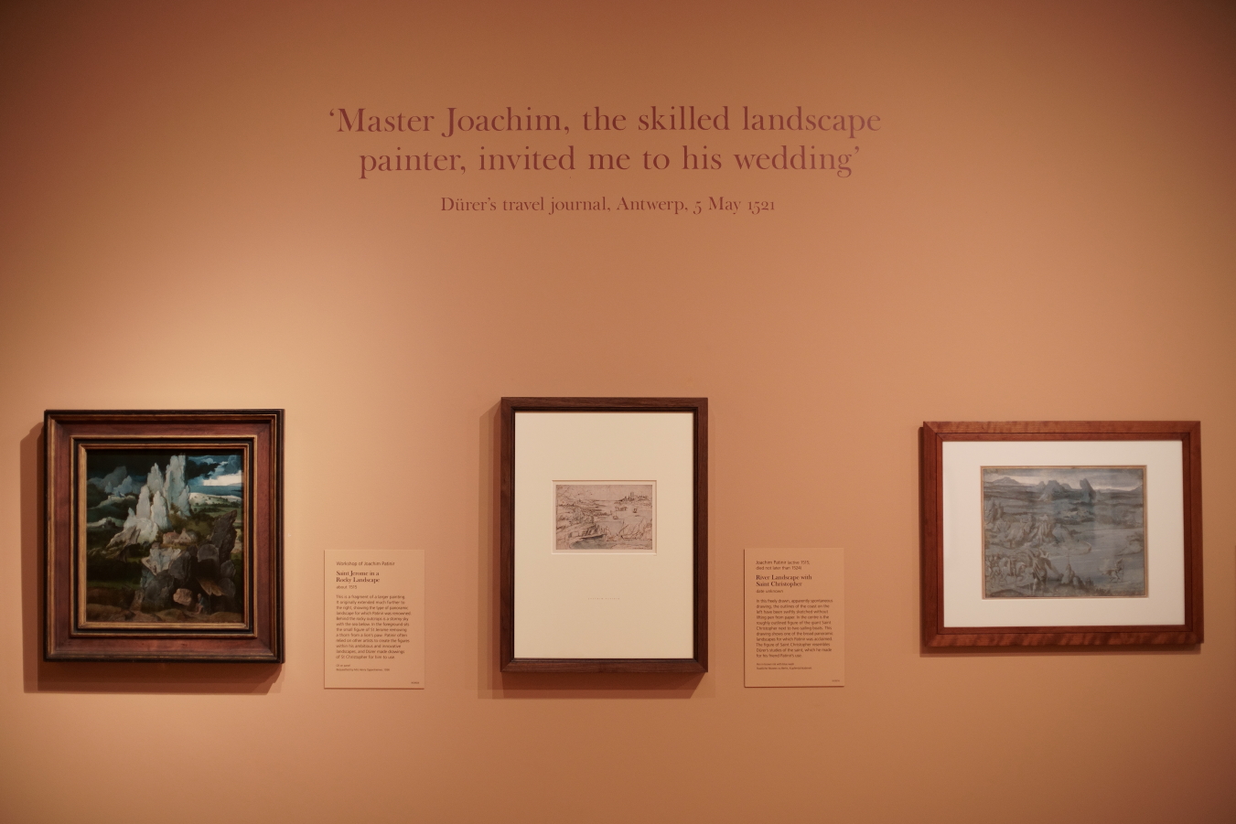 Part of this room focused on Dürer’s friendship with Joachim Patinir and their depictions of St Christopher. They seemed to be close; in Antwerp, Dürer noted in his diary on 3 May 1521 that Patinir invited him to his wedding.