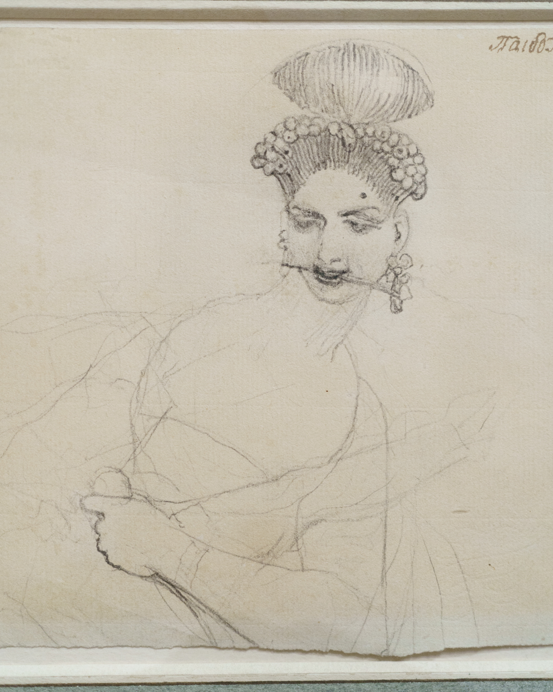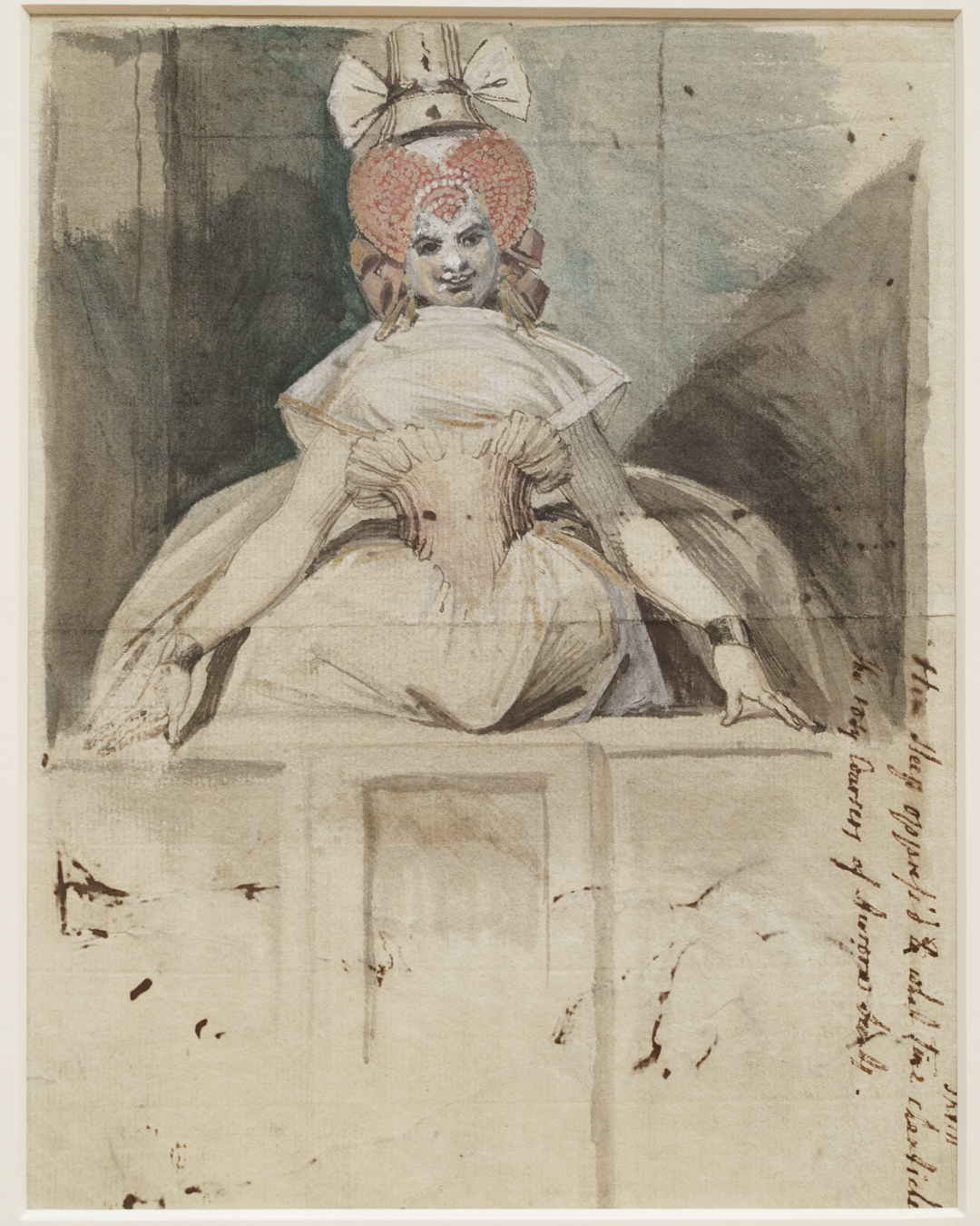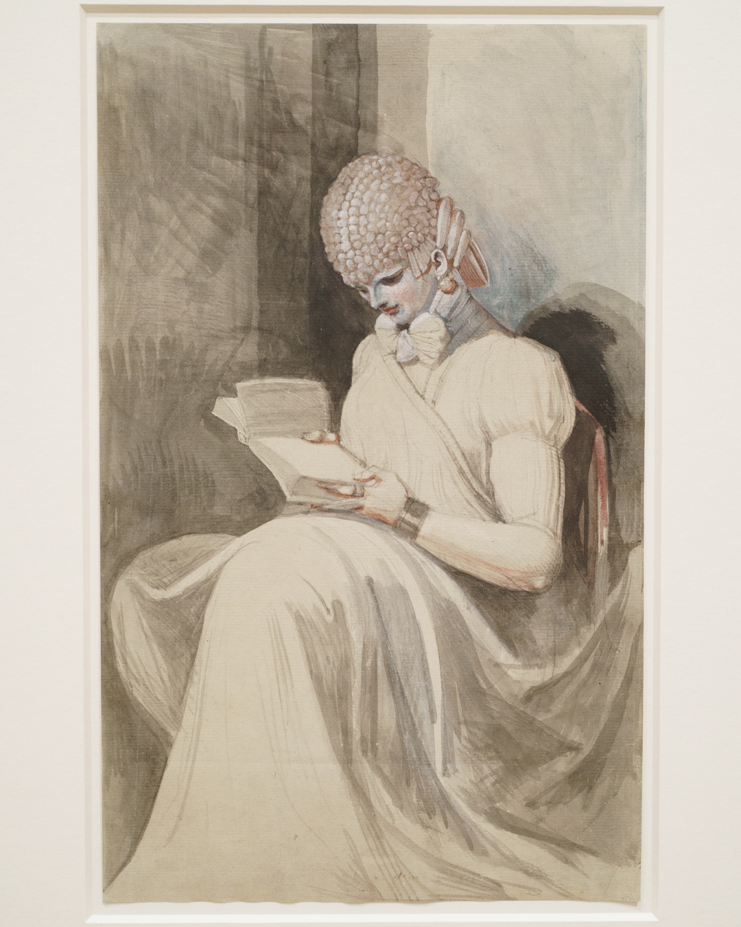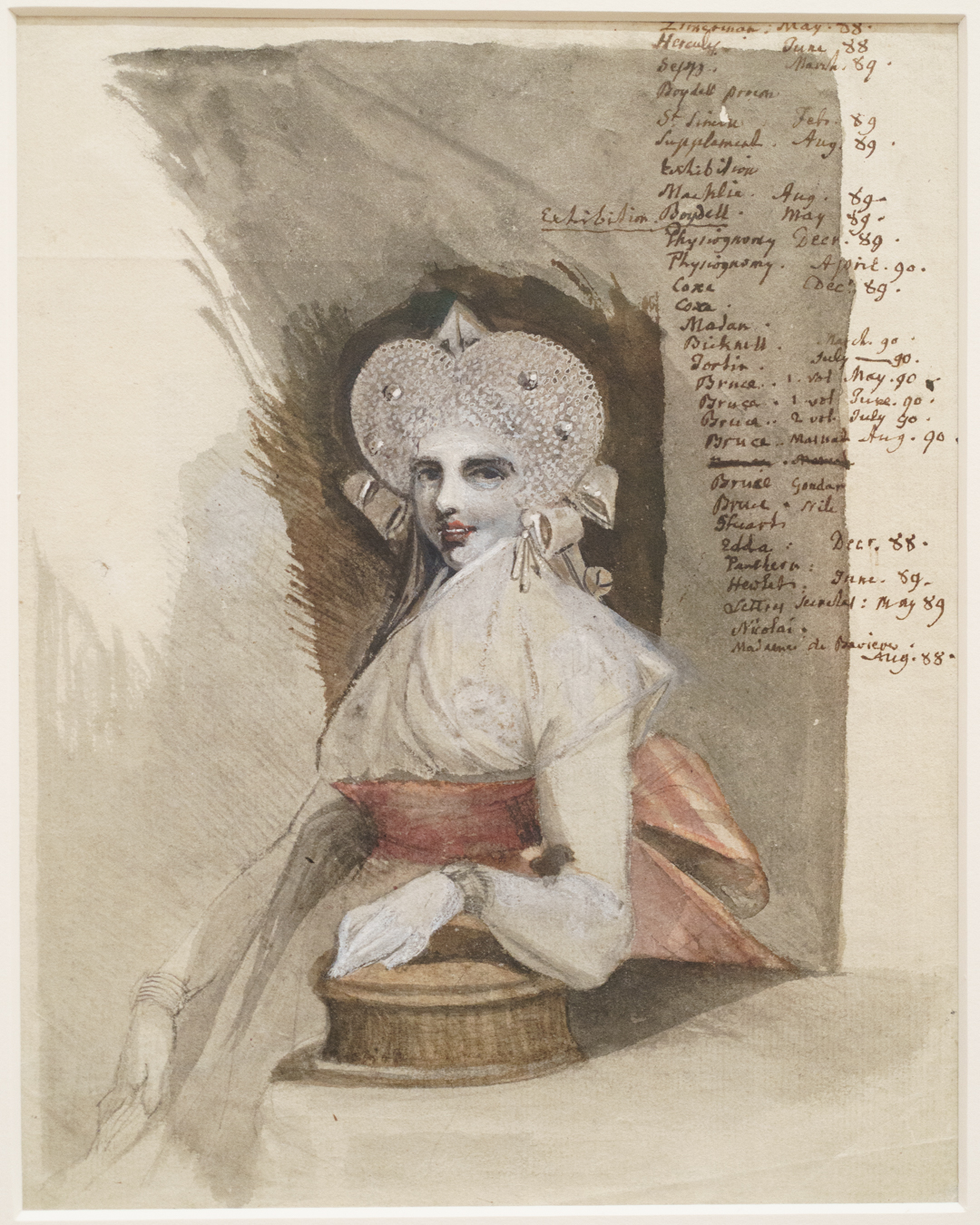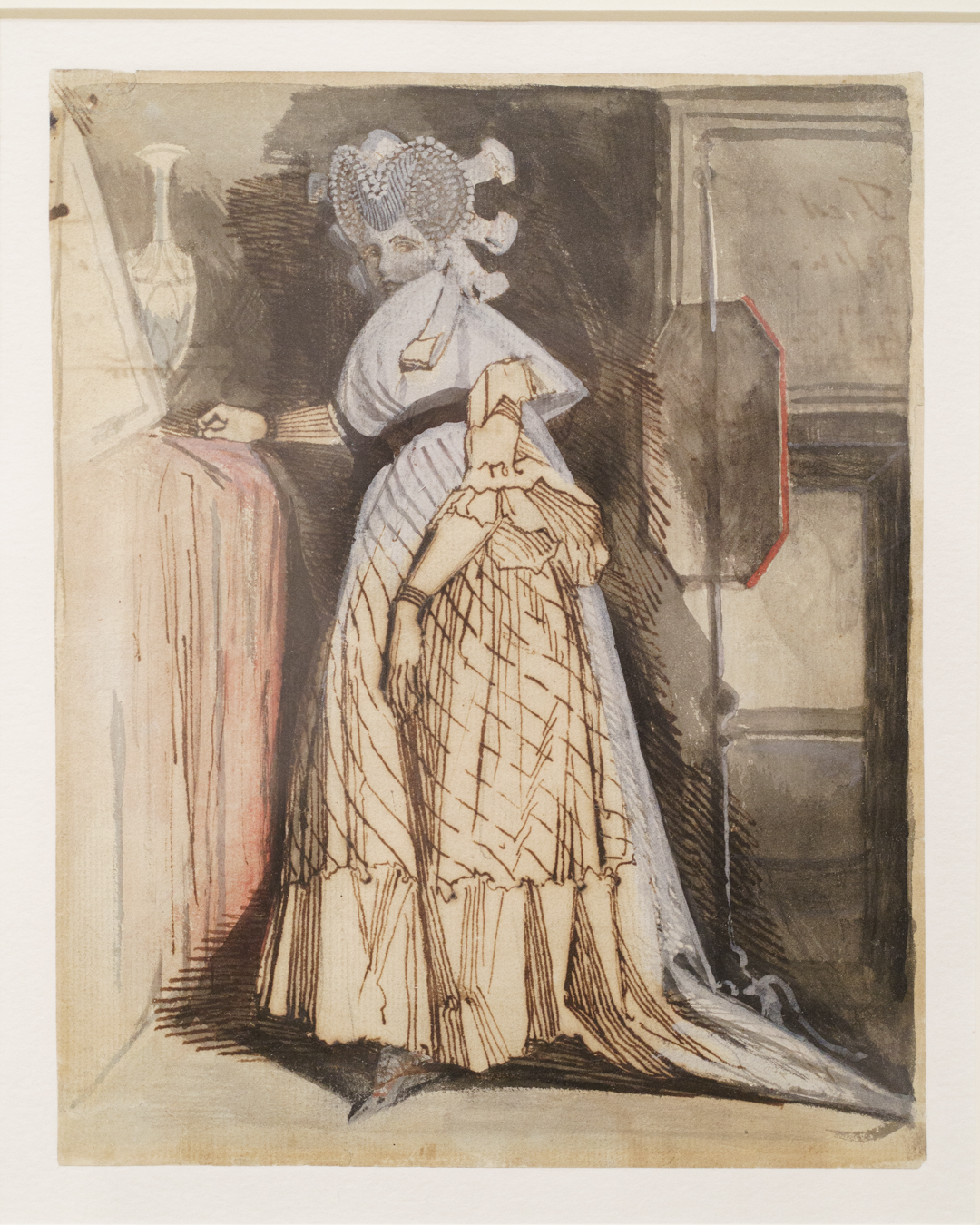 Unwittingly, these drawings also offer a kind of documentation of fashionable clothing in Fuseli’s time. To my untrained eyes, there were a lot of ribbons and bows, massive hats and braided hair, and overall loose dresses secured at the waist for an hourglass figure. A fair bit of freeing the nipple too when it comes to courtesans, but they also get puffy sleeves!