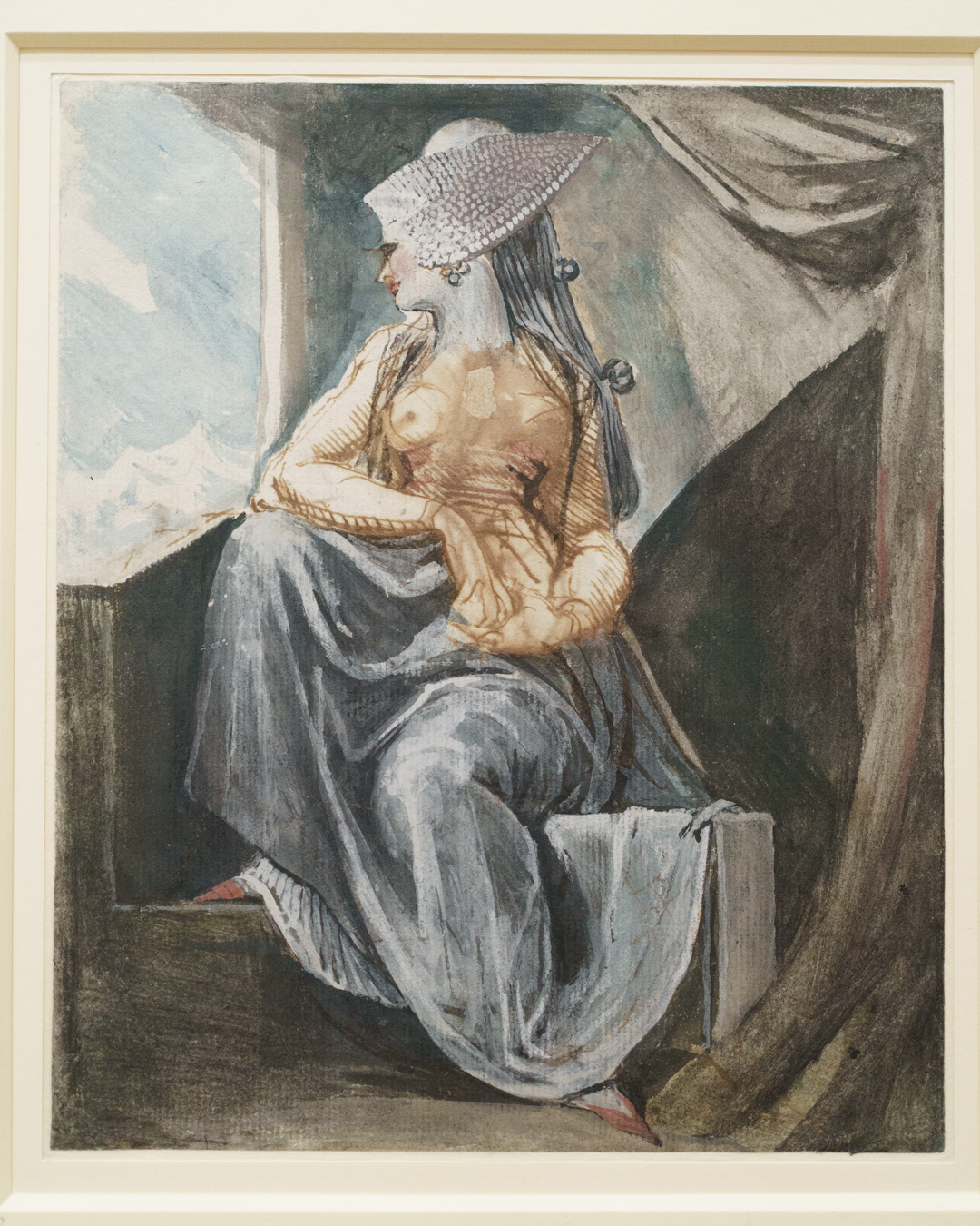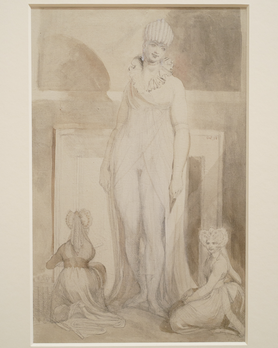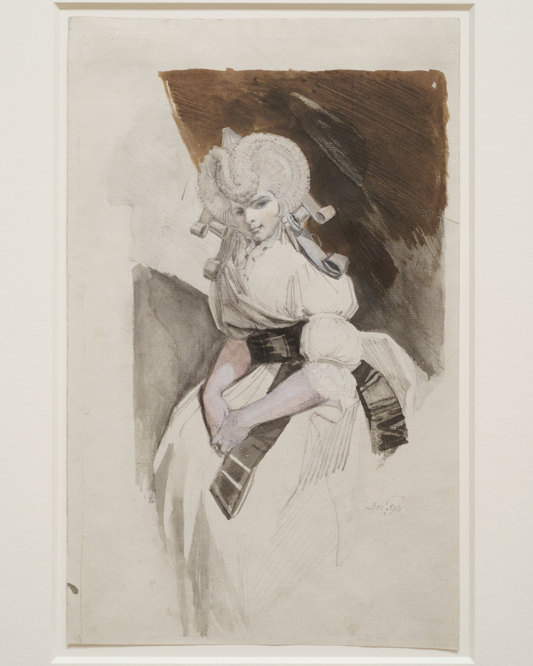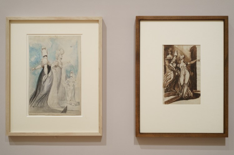 What connects all of this, however, is Fuseli’s remarkable attention to fashionable details in the subjects’ outfits and whimsical hairstyles. I guess he has a clothing fetish too? Perhaps, or rather an awareness of how clothing can elicit feelings in the observer via unique visual effects, such as sheer clothing or suggestive geometric shapes.