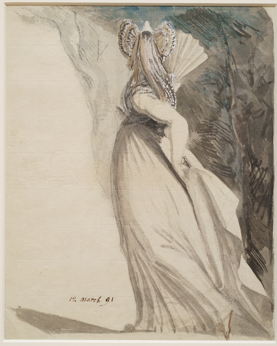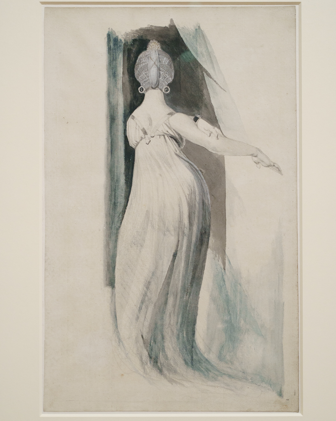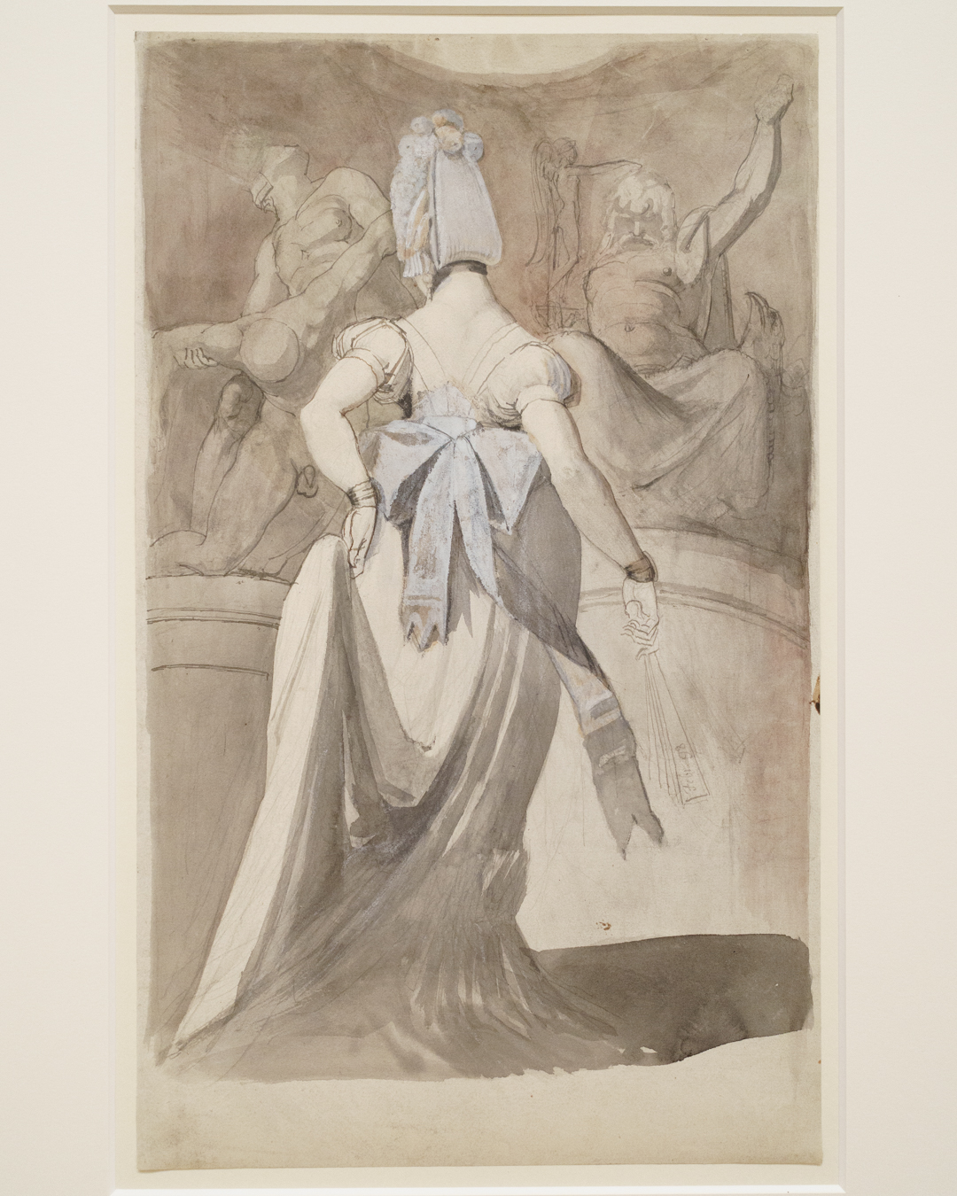 Fuseli clearly liked the view from behind. Not only does he accentuate the way a free-flowing dress drapes over his subject’s large buttocks, practically teasing her sensuous underlying structure, the fact he rarely reveals their faces in such drawings is indicative of his approach to them as objects of sexual desire.