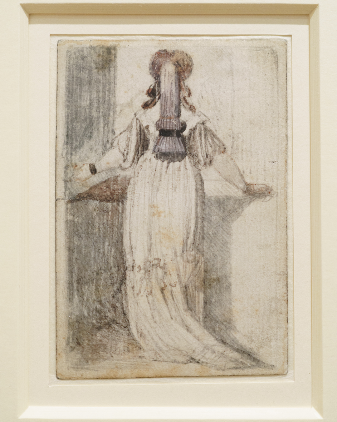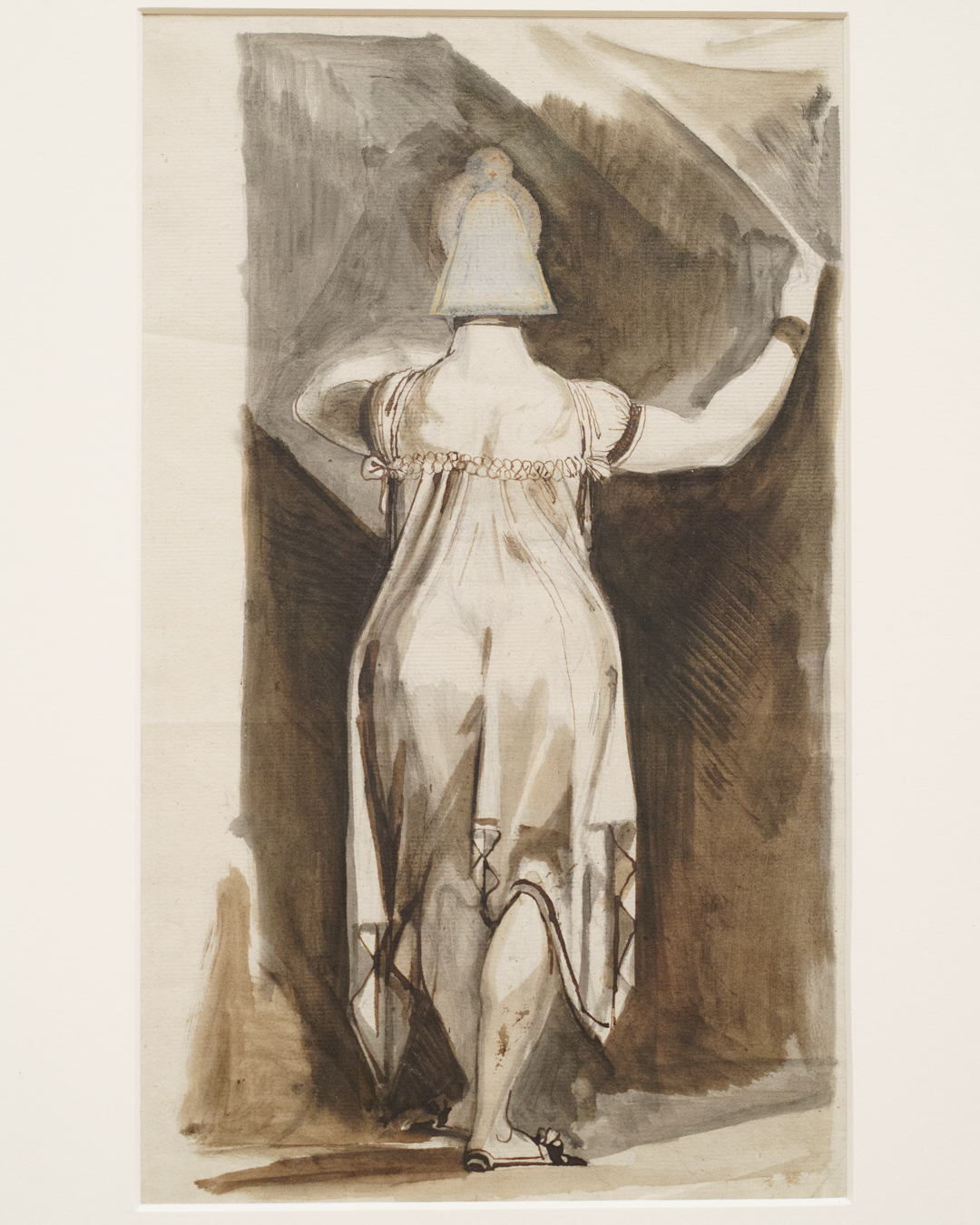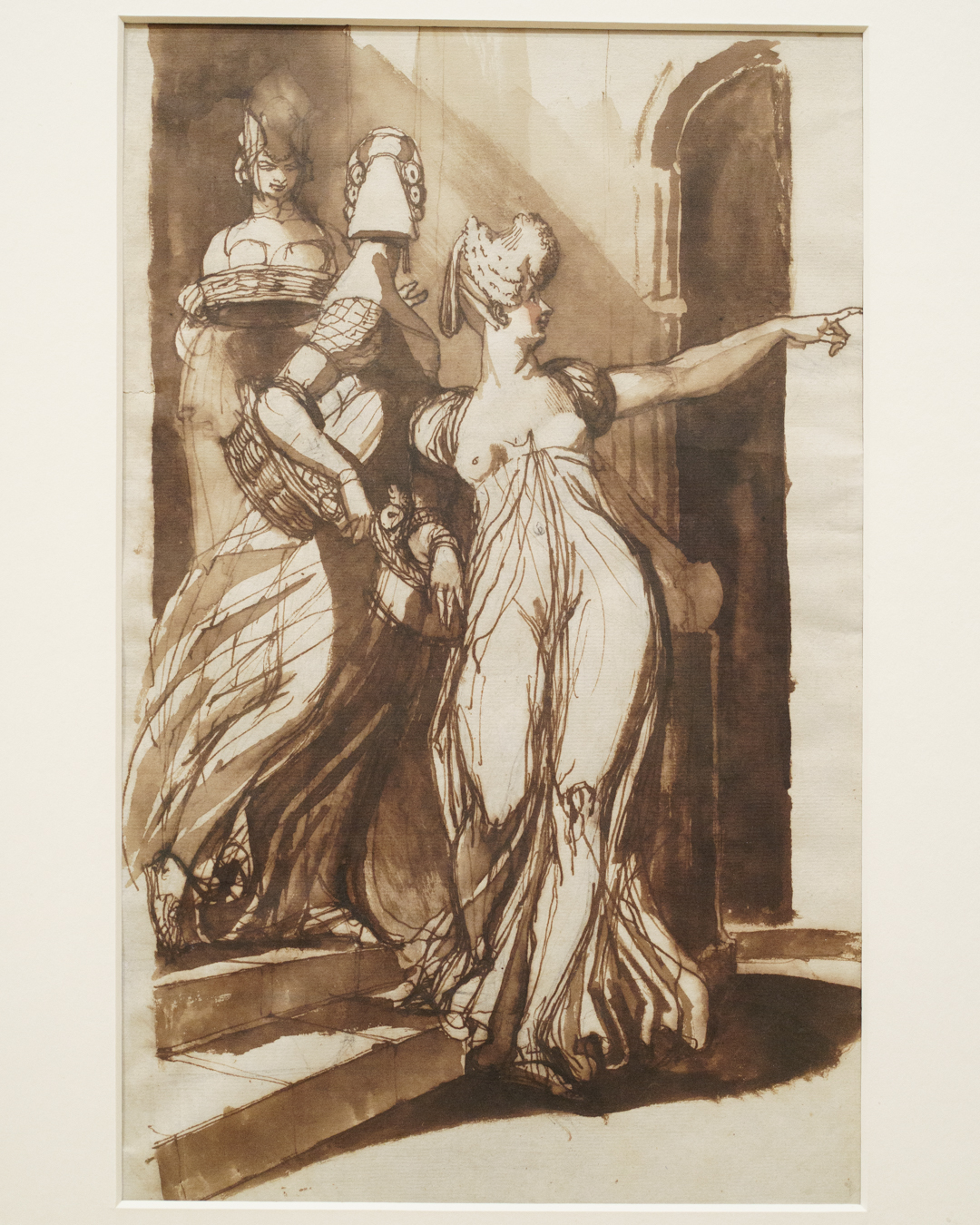 Fuseli clearly liked the view from behind. Not only does he accentuate the way a free-flowing dress drapes over his subject’s large buttocks, practically teasing her sensuous underlying structure, the fact he rarely reveals their faces in such drawings is indicative of his approach to them as objects of sexual desire.
