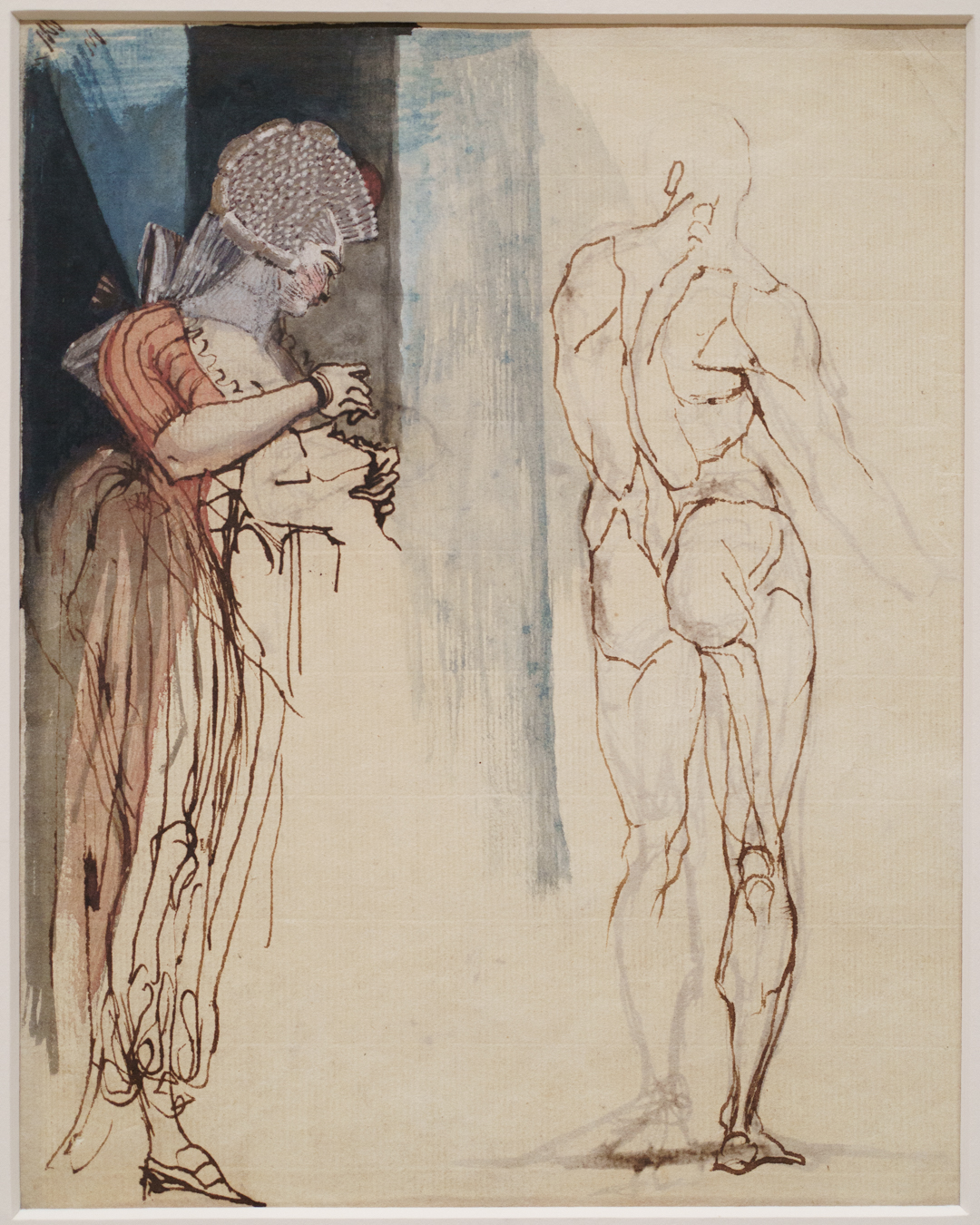 Additional observations of note: 1) Fuseli consciously framed his subjects as actual pictures, seen in the way he fills in the background towards clean edges and corners, and 2) it’s fun to see the occasional scribble on the side of a sheet where he was testing that his pen actually works.