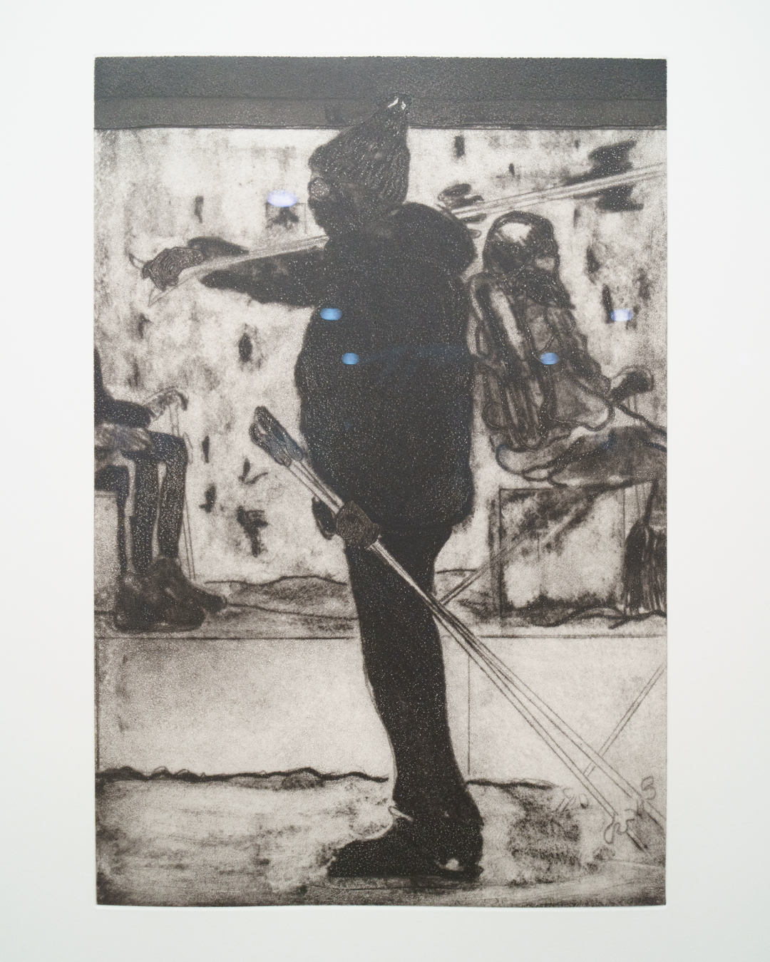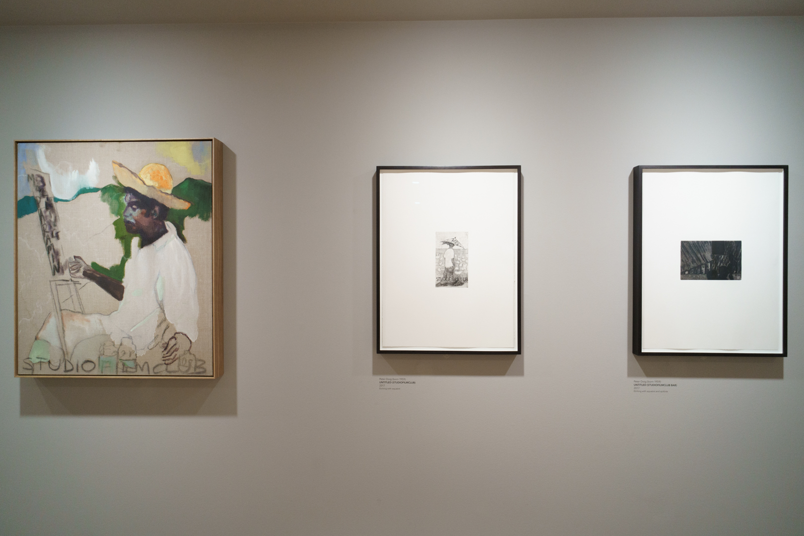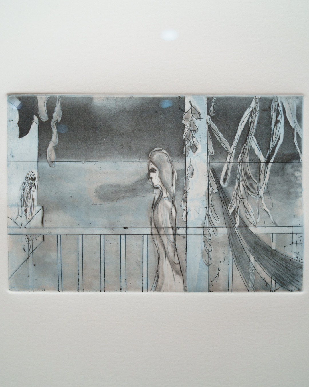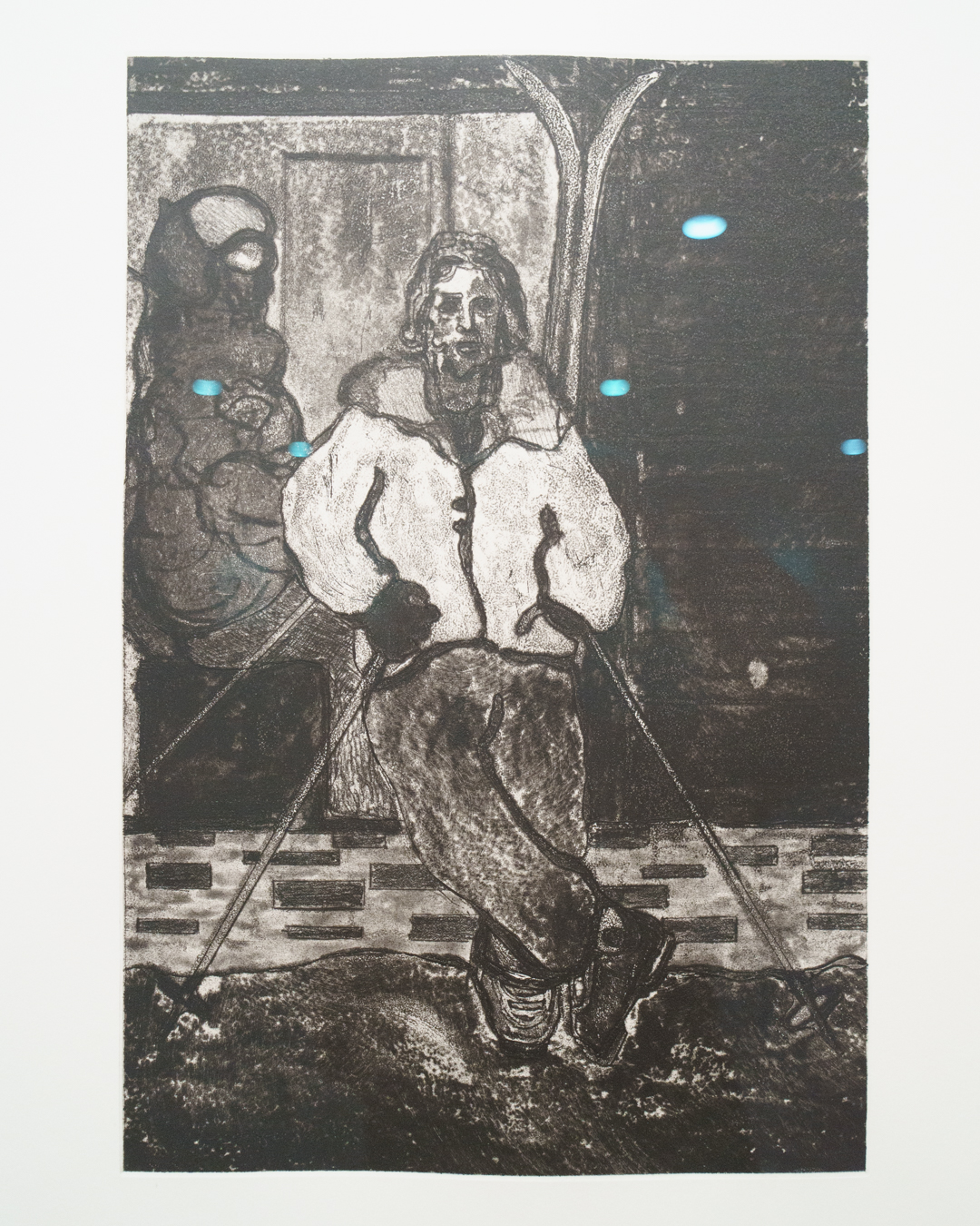 Downstairs, Doig’s etchings inspired by his poet friend Derek Walcott are exhibited for the first time in a free display. They were produced in response to Walcott’s collection of poems Morning, Paramin (2016) that were each inspired by Doig’s paintings. The range of visual effects created by etching with aquatint is impressive; some are perfectly dark without texture, some are closer to watercolours, and the subject matter is incredibly diverse. These come across as very experimental works across multiple dimensions.