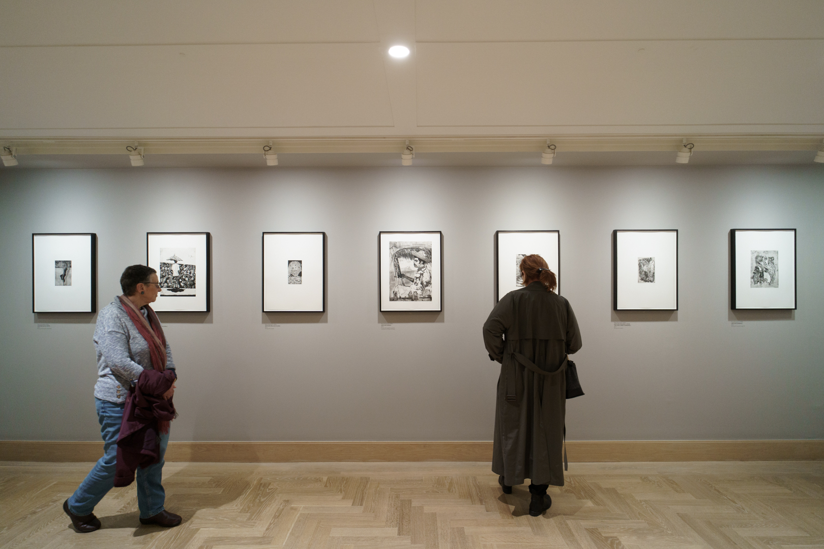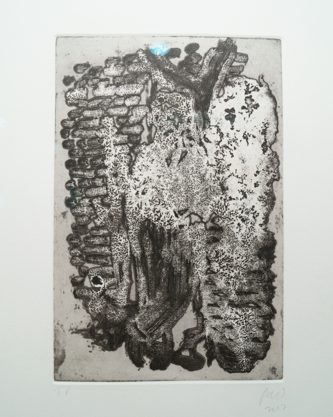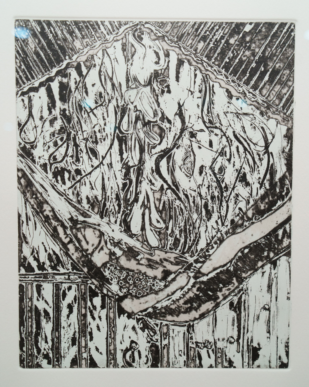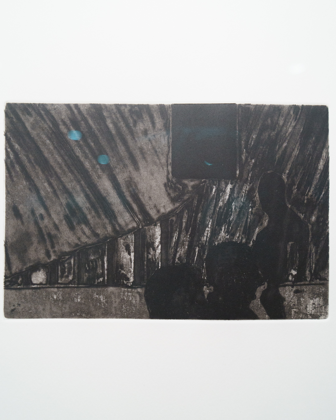 Downstairs, Doig’s etchings inspired by his poet friend Derek Walcott are exhibited for the first time in a free display. They were produced in response to Walcott’s collection of poems Morning, Paramin (2016) that were each inspired by Doig’s paintings. The range of visual effects created by etching with aquatint is impressive; some are perfectly dark without texture, some are closer to watercolours, and the subject matter is incredibly diverse. These come across as very experimental works across multiple dimensions.