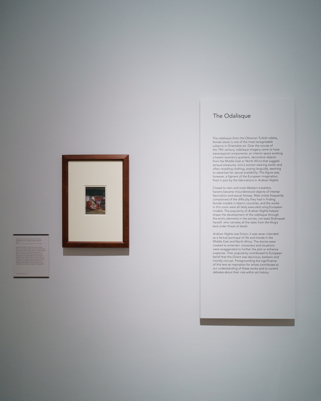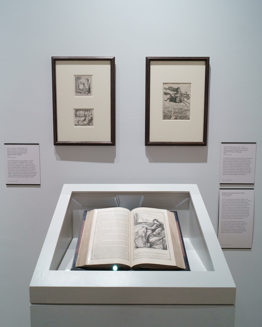 An easy display to miss, Drawing on Arabian Nights at the Courtauld Gallery is a thrilling analysis of Europe’s obsession with Orientalism and the impact of the folk tales in Edward Lane’s translation of One Thousand and One Nights (ألف ليلة و ليلة) on 19th-century artists. An illustrated edition of the Arabian Nights executed by the Dalziel Brothers is also on view.