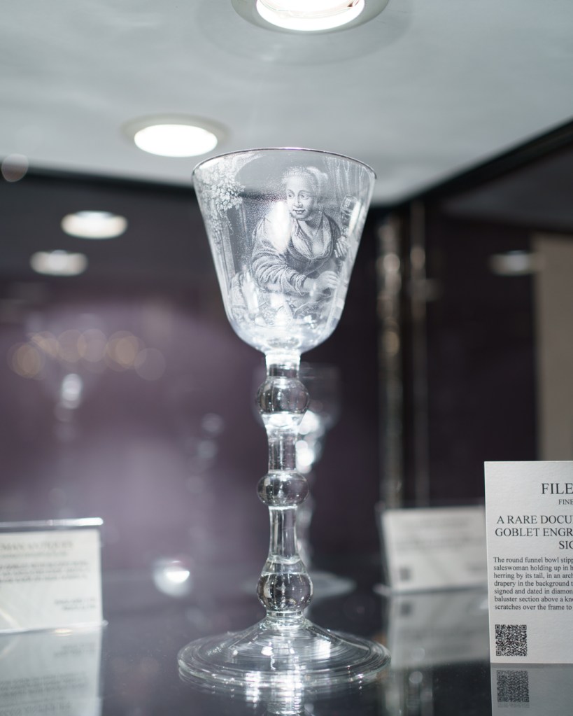 A rare documentary stipple-engraved goblet engraved by Frans Greenwood, 1742 (Fileman Antiques – stand 110)