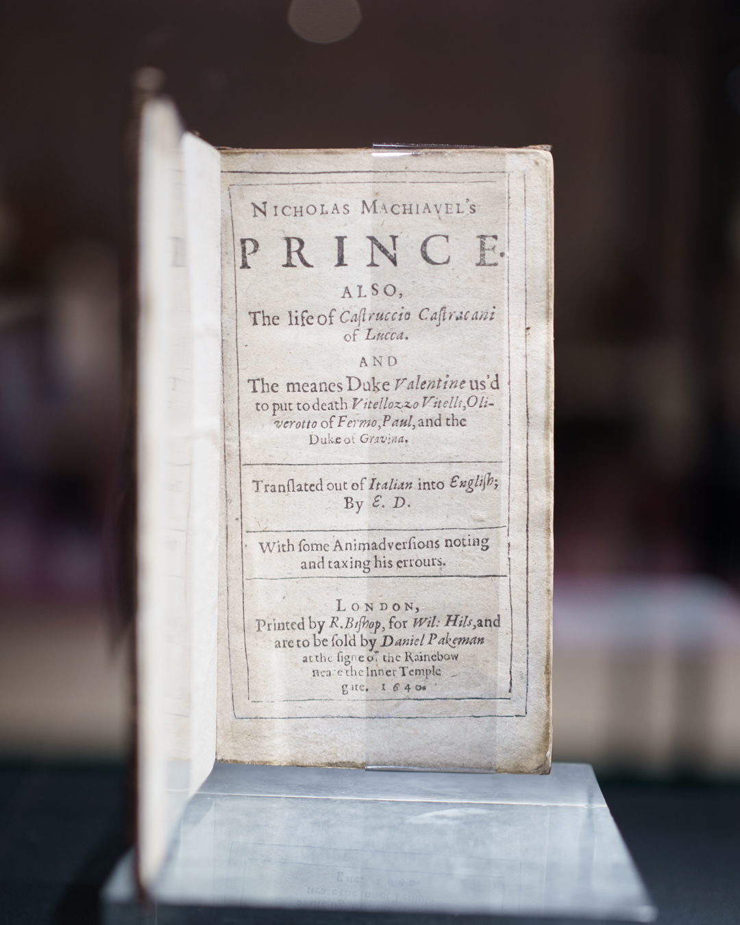 Niccolò Machiavelli, The Prince, 1st English edition, 1640 (Peter Harrington – stand 122)