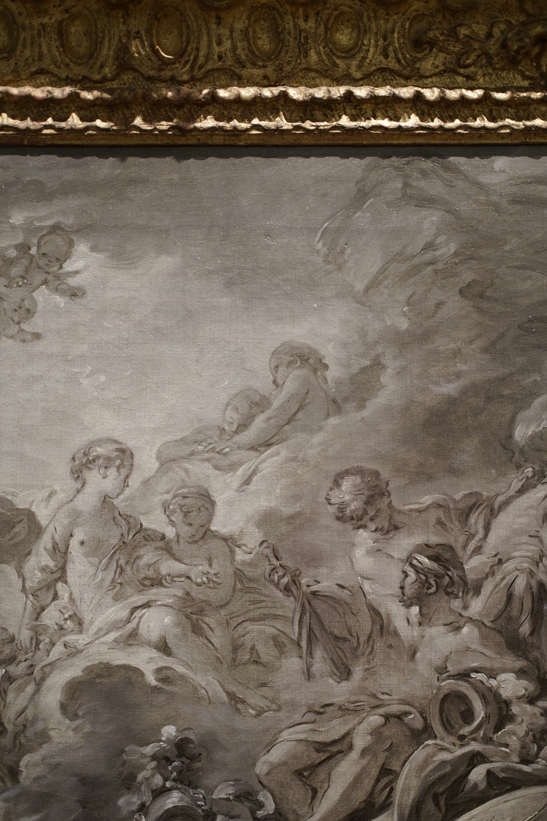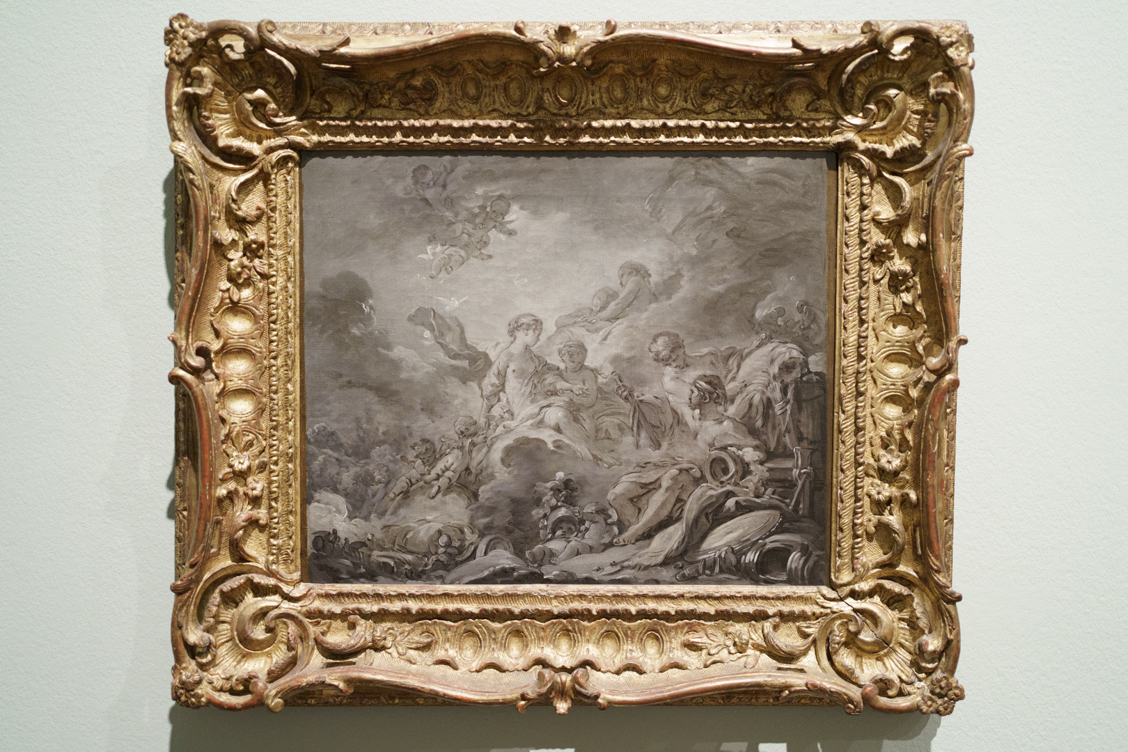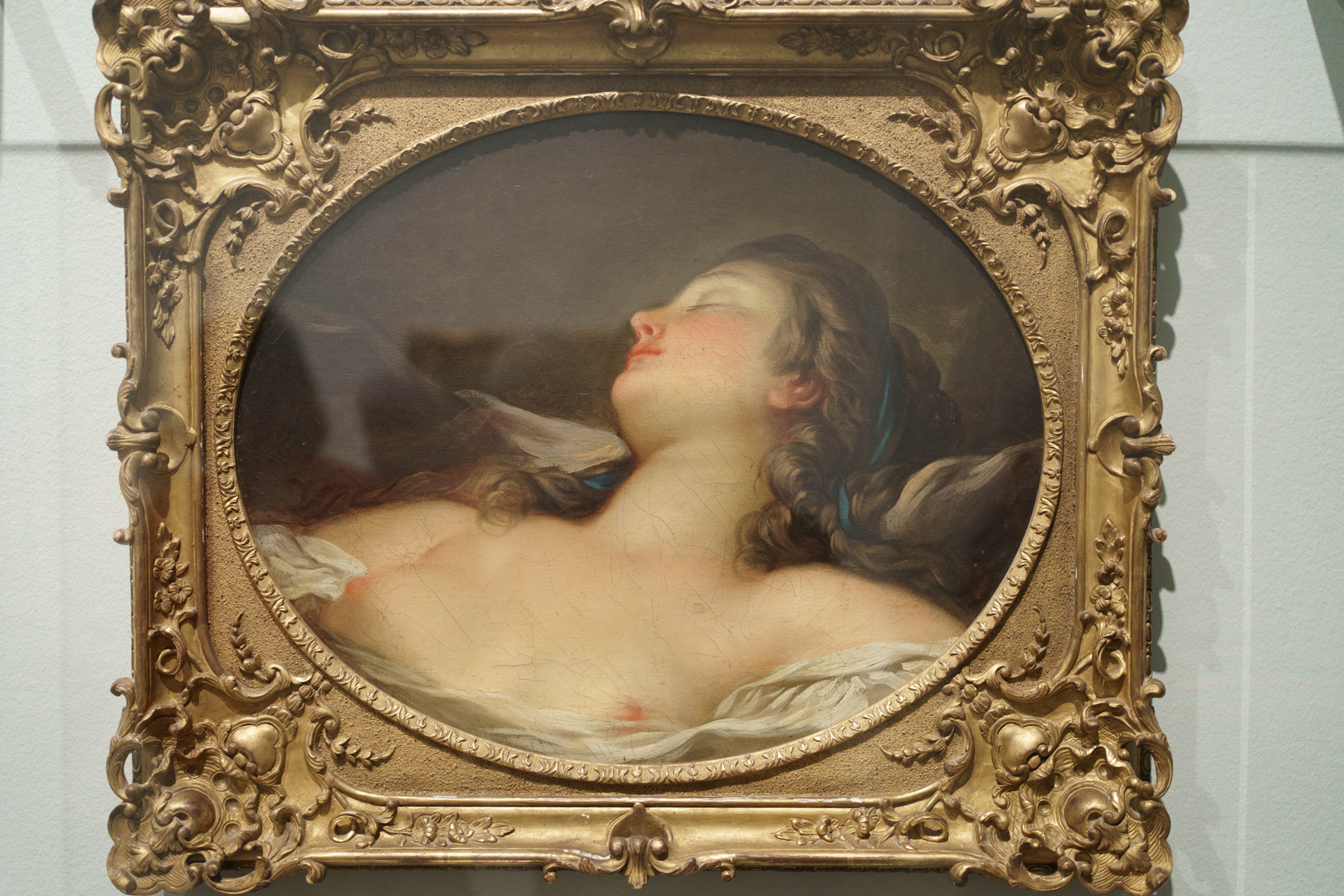 The fusion of these influences creates in Morisot’s paintings an incredible sense of directness from the sitter, splendid attire that is lavish and tactile, and delightful interactivity between multiple sitters, especially children like her daughter Julie. Seeing the decorated fan Morisot owned in front of an eloquent portrait featuring said fan was extremely satisfying. Furthermore, her partial copies of François Boucher’s ceiling works retain a delightful sweetness that animates her figures in ways the originals do not.