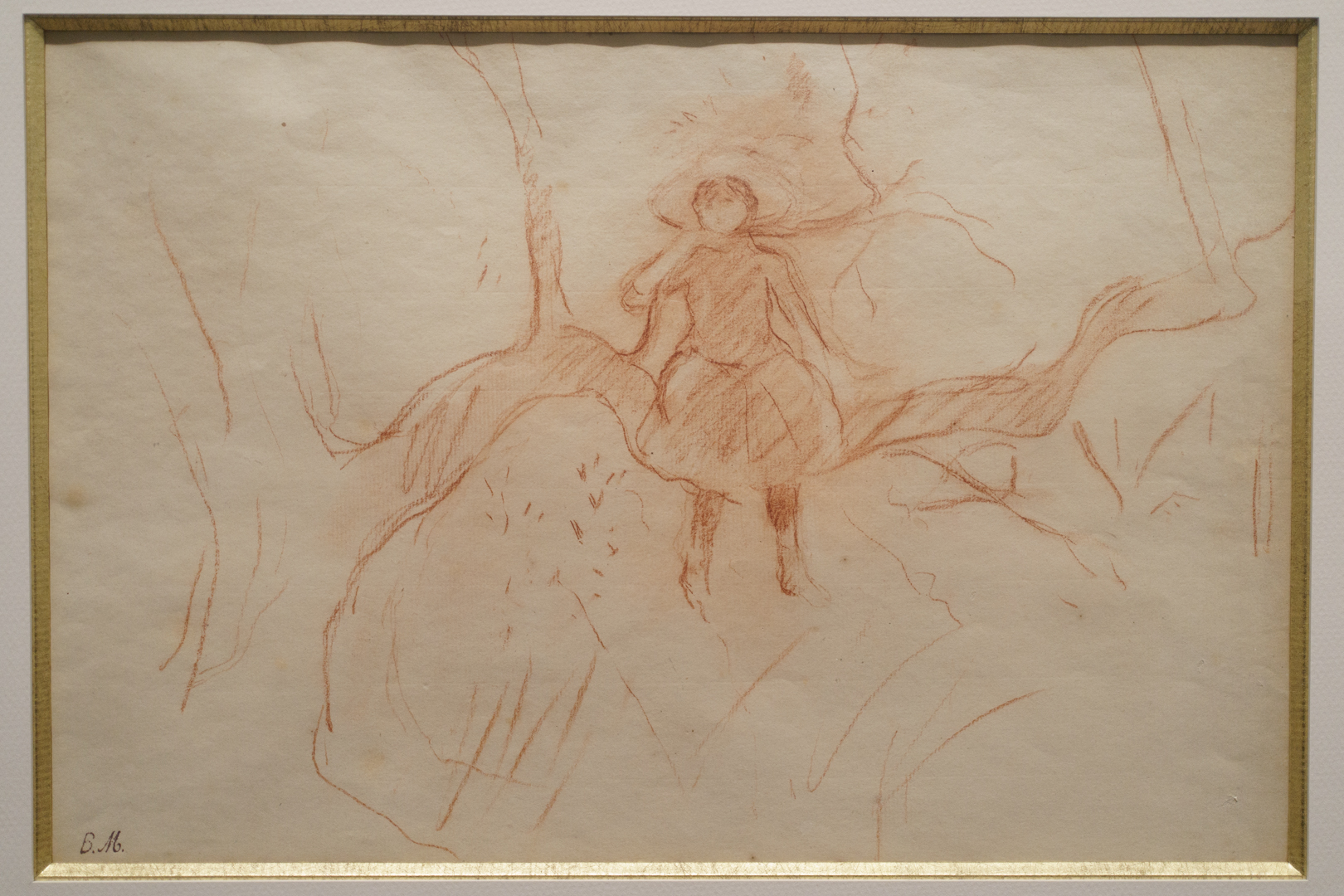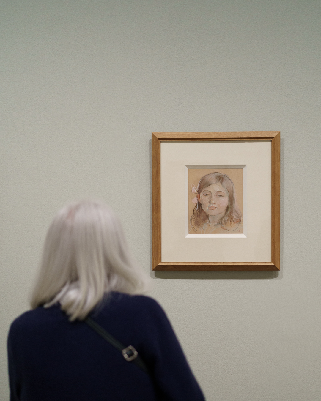 Morisot’s pastel and chalk drawings play a small but significant part in the exhibition – no prints, sadly – offering valuable insight into her colour blending techniques and drawing style, contrasted with a powerful Jean-Baptiste Perronneau pastel drawing. Crucially, the presence of a squared-for-transfer drawing shows Morisot adopting a centuries-old, labour-intensive process used for scaling up preparatory drawings to their final destinations. Remnants of this meticulous process can be seen in the background of Paule Gobbilard in a Ballgown in the final room.