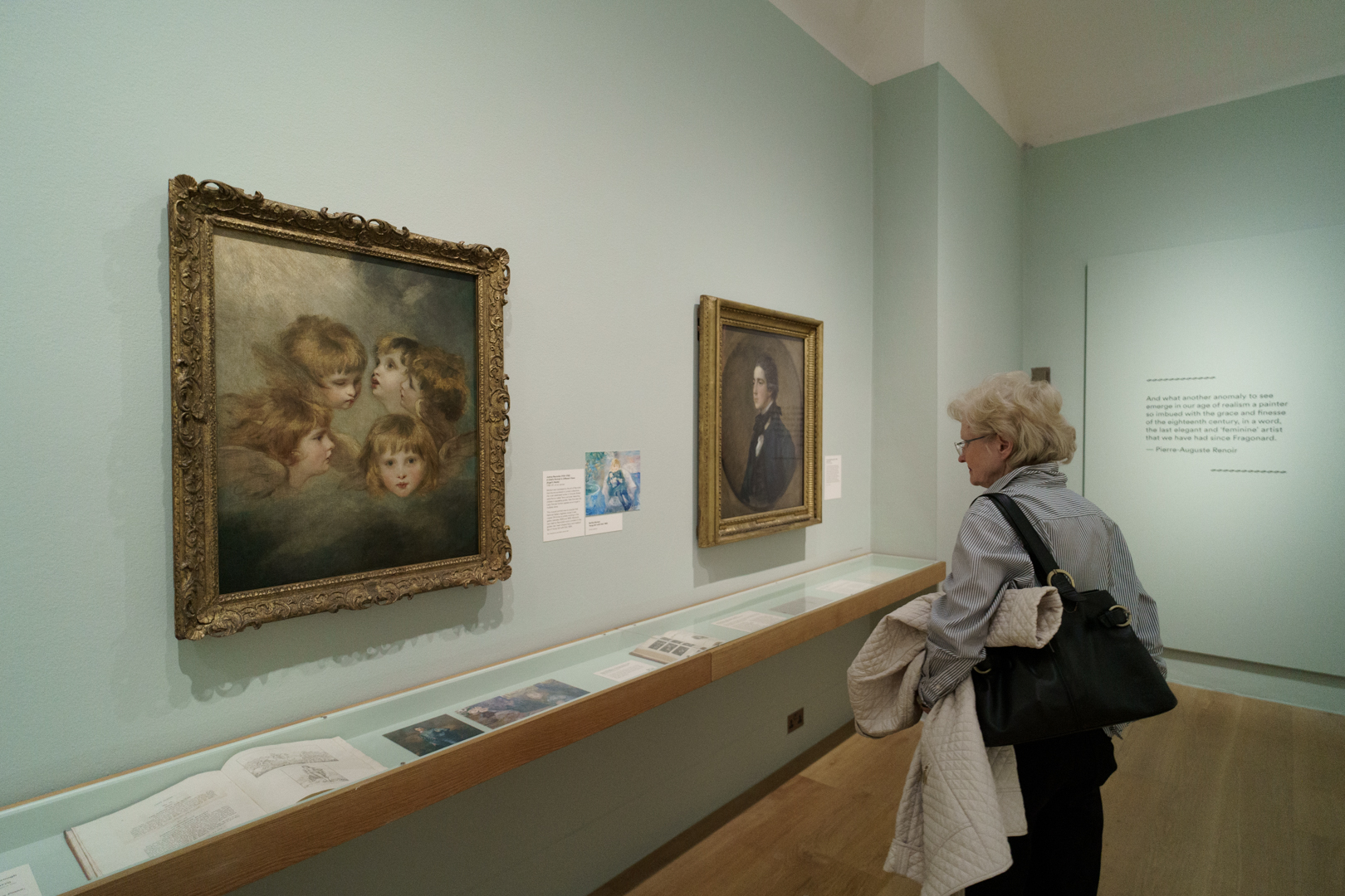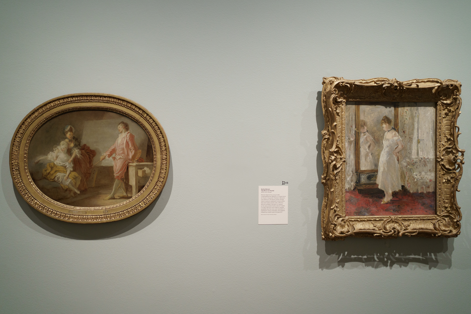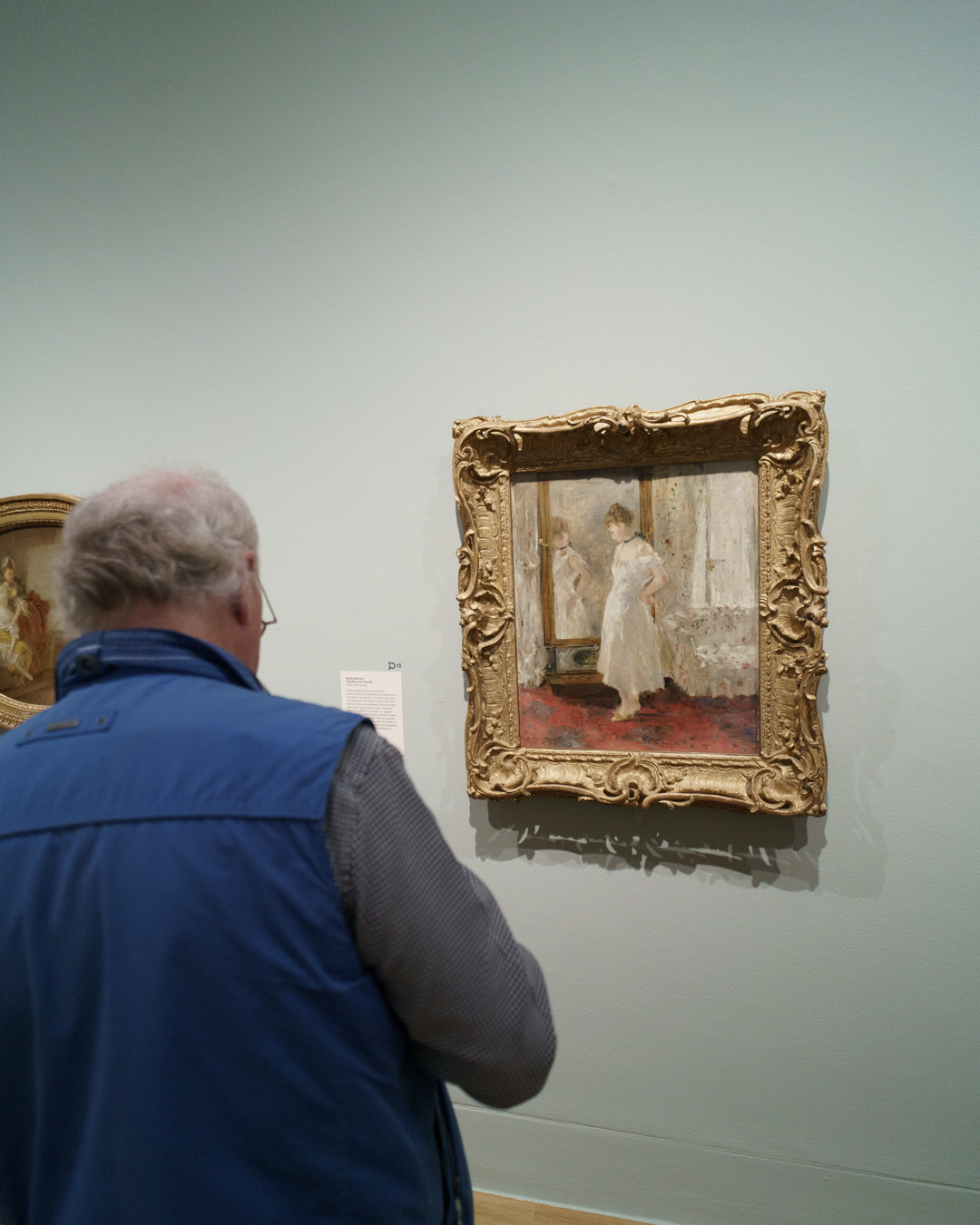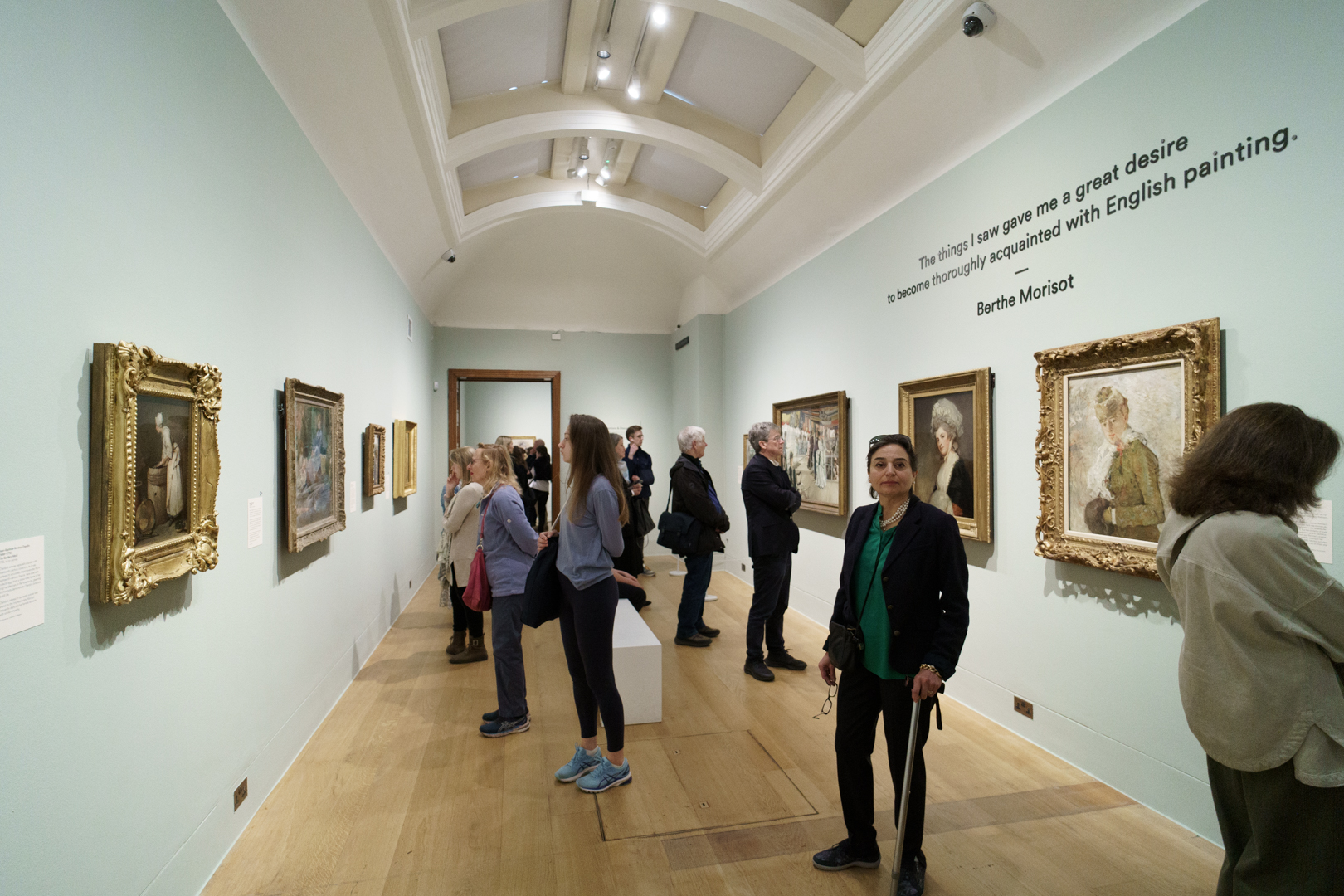 A wide selection of Morisot’s paintings have been placed in dialogue with renowned 18th-century French and British artists, rather than her immediate contemporaries in Impressionism, to which she was a founding member. This contextual shift enables her art to be more objectively re-examined in the same critical light as male artists of her generation: comparison with the established greats of art history. As the quotes on the walls reveal, there was no shortage of positive attributes and analogies attested to her.