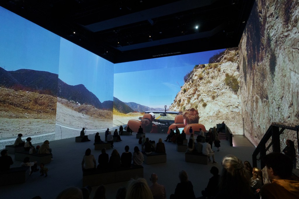 I’m not the greatest Hockney fan, but this experience reinvigorated why I like some aspects of his work so much since discovering his work in a Royal Academy of Arts retrospective. His embracement of new technologies is also an admirable quality that I don’t usually see in elder artists. This is very much an extension of that, and his large-scale artworks lead themselves very naturally to this kind of presentation.