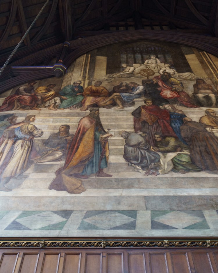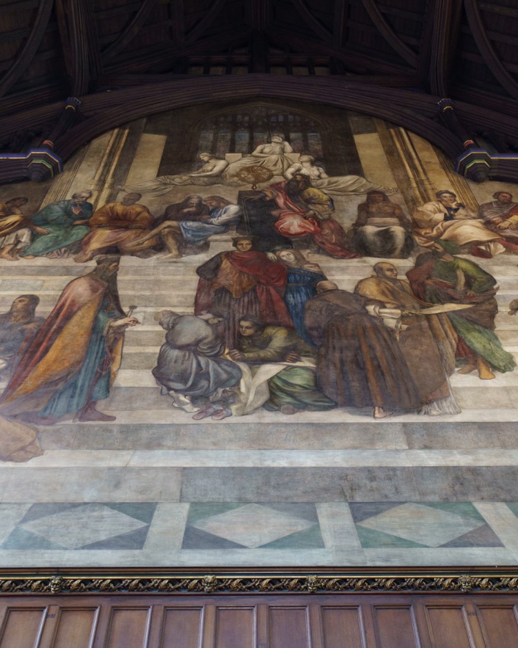 The participatory nature of this fresco meant that the gathering of past rulers (Edward I, Alfred the Great, Attila the Hun), philosophers (Confucius, Zoroaster, Pythagoras), even the Egyptian god Ptah, was ‘completed’ by the present lawgivers (Benchers of the High Table) sat on the raised platform beneath it, and the future lawgivers (barristers and students). In other words, the fresco acts no different than a Last Supper scene in the refectory of most Italian churches.