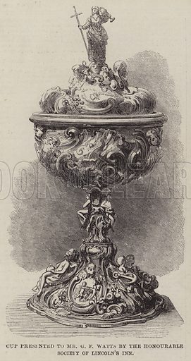Pleased with Watts’ fresco, the Society gifted him 500 sovereigns ‘in a handsome purse contained in a silver cup’ as thanks (‘a complimentary, a friendly, and a grateful remembrance.’), rather than as remuneration or compensation. After his death, Watts’ widow, Mary Setton Watts, gifted the silver-gilt ciborium back to the Inn in 1925.