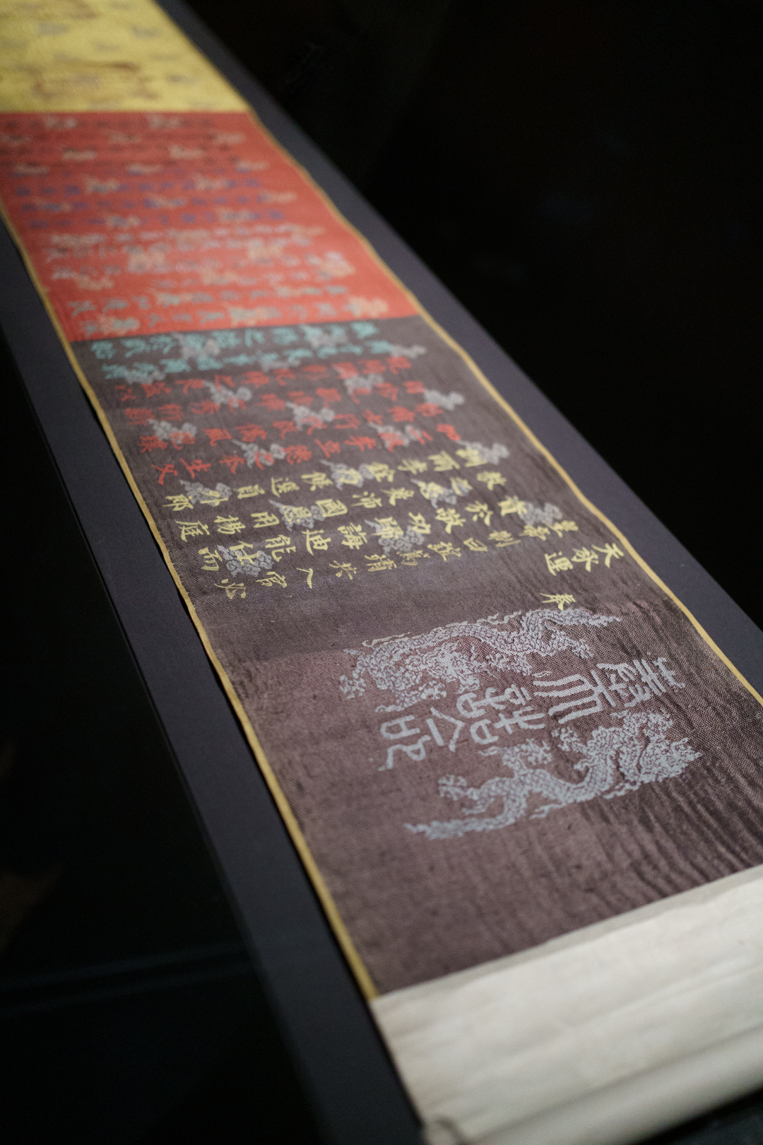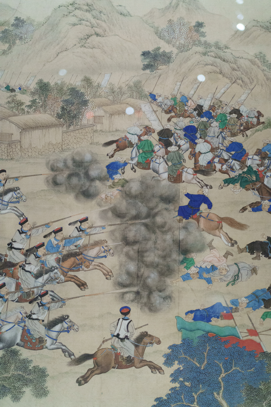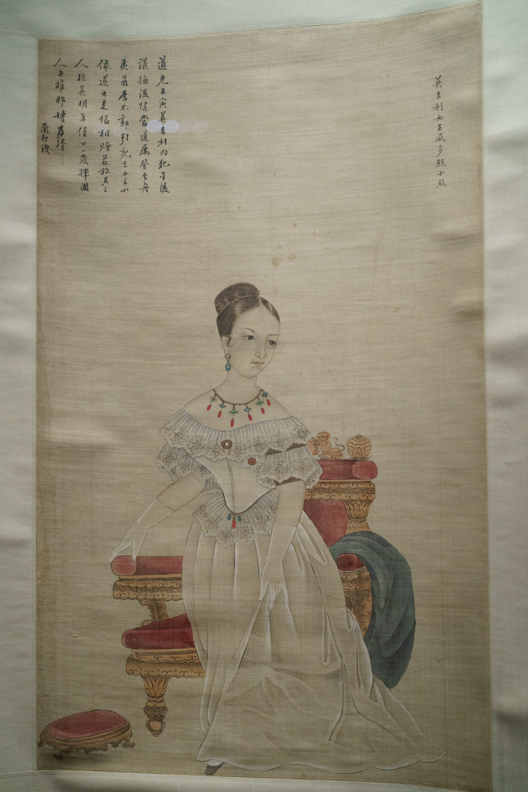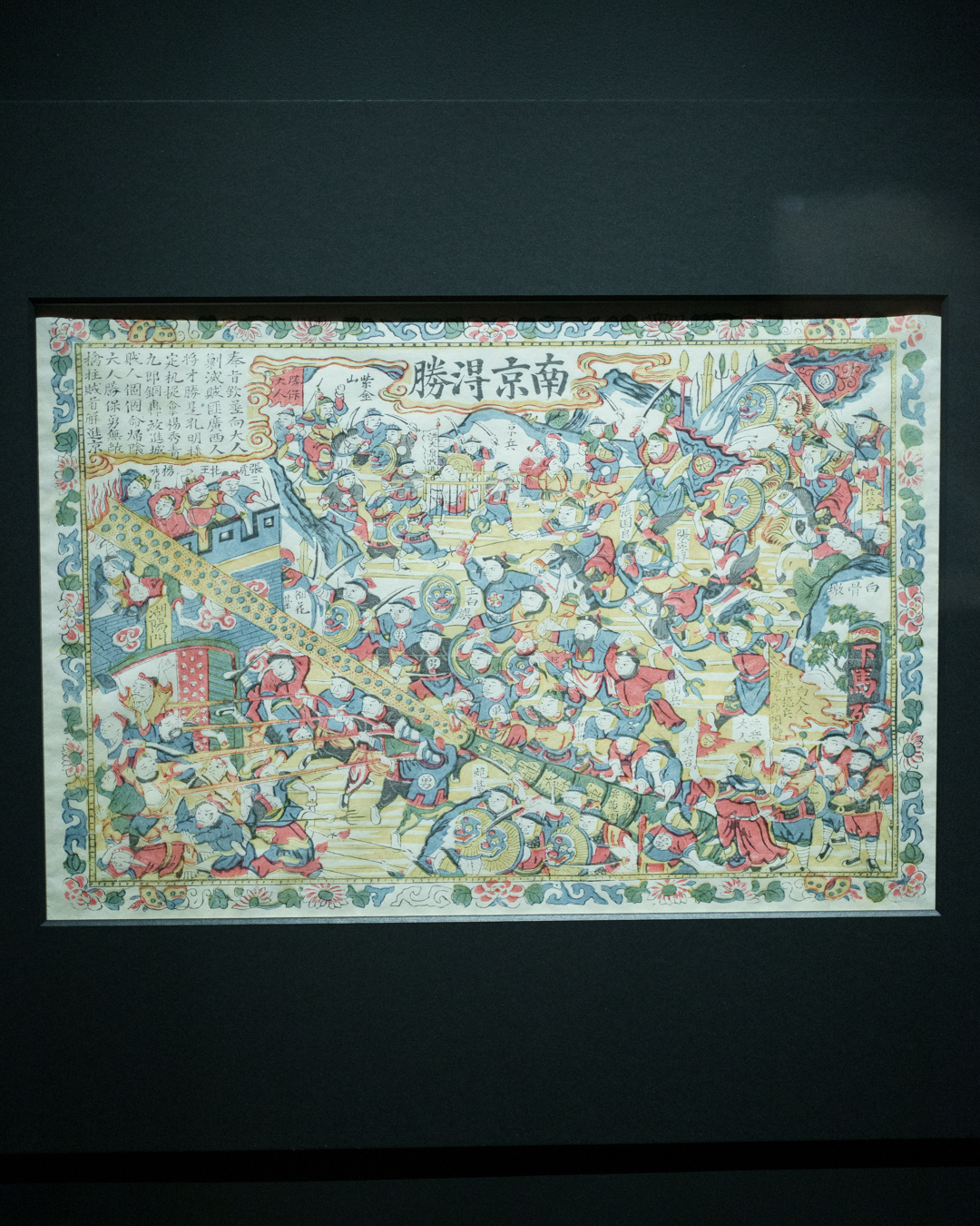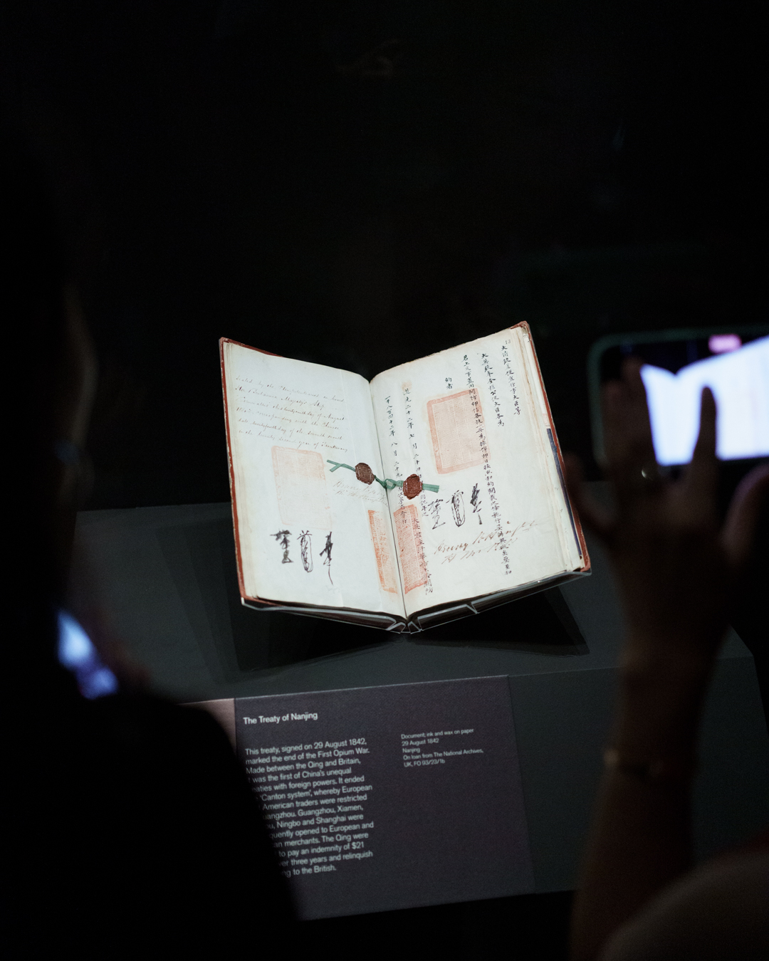 The First Opium War against the British led to the Qing facing several rebellions, such as the Taiping Civil War and Nian Rebellion. One spectacular painting of the Battle at the Wei River represents this internal turmoil. We also see ceramic remnants from the looted Summer Palace during the Second Opium War. But nothing is more emblematic than the Treaty of Nanjing which, among other things, surrendered Hong Kong to the British.