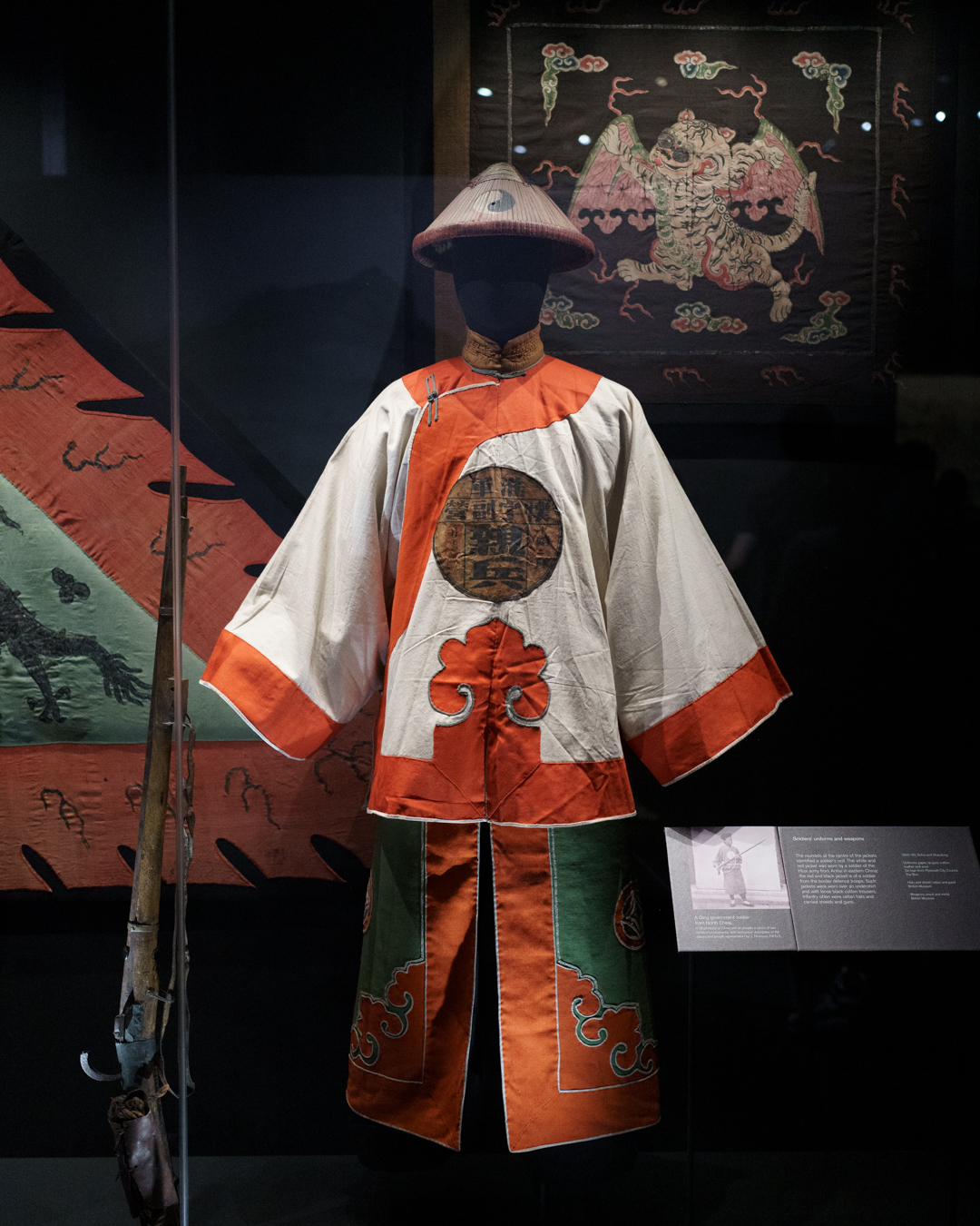 Every powerful empire had an equally strong military, and we are thus presented with a portrait of a bannerman beside a related suit of armour. A set of drawings present an overview of the different kinds of soldiers, also alongside some uniforms and weaponry. This is where the focus shifts towards the Qing’s decline; the exhibition ends with reformists and revolutionaries like Qiu Jin (秋瑾).