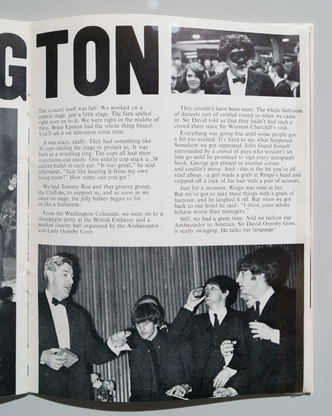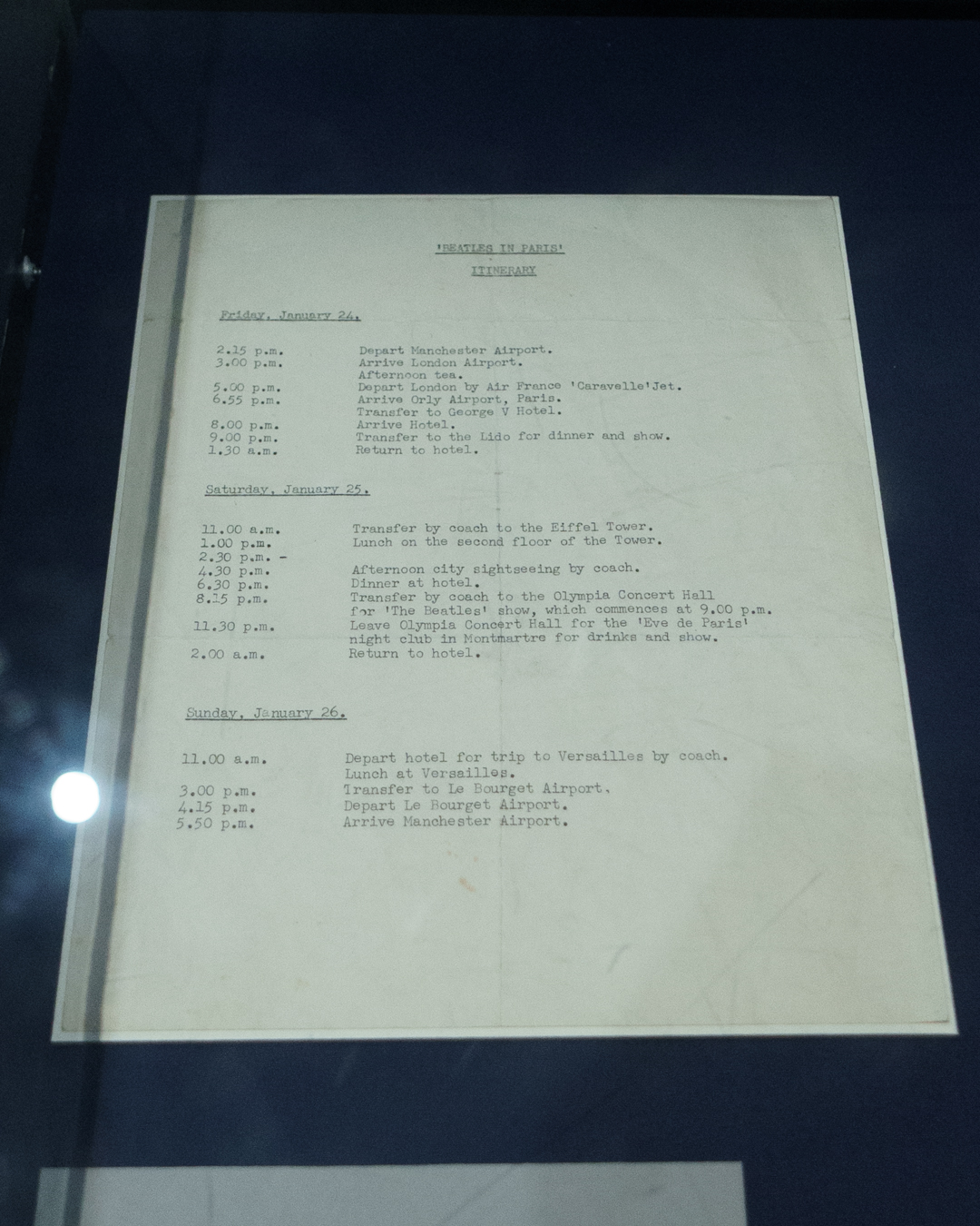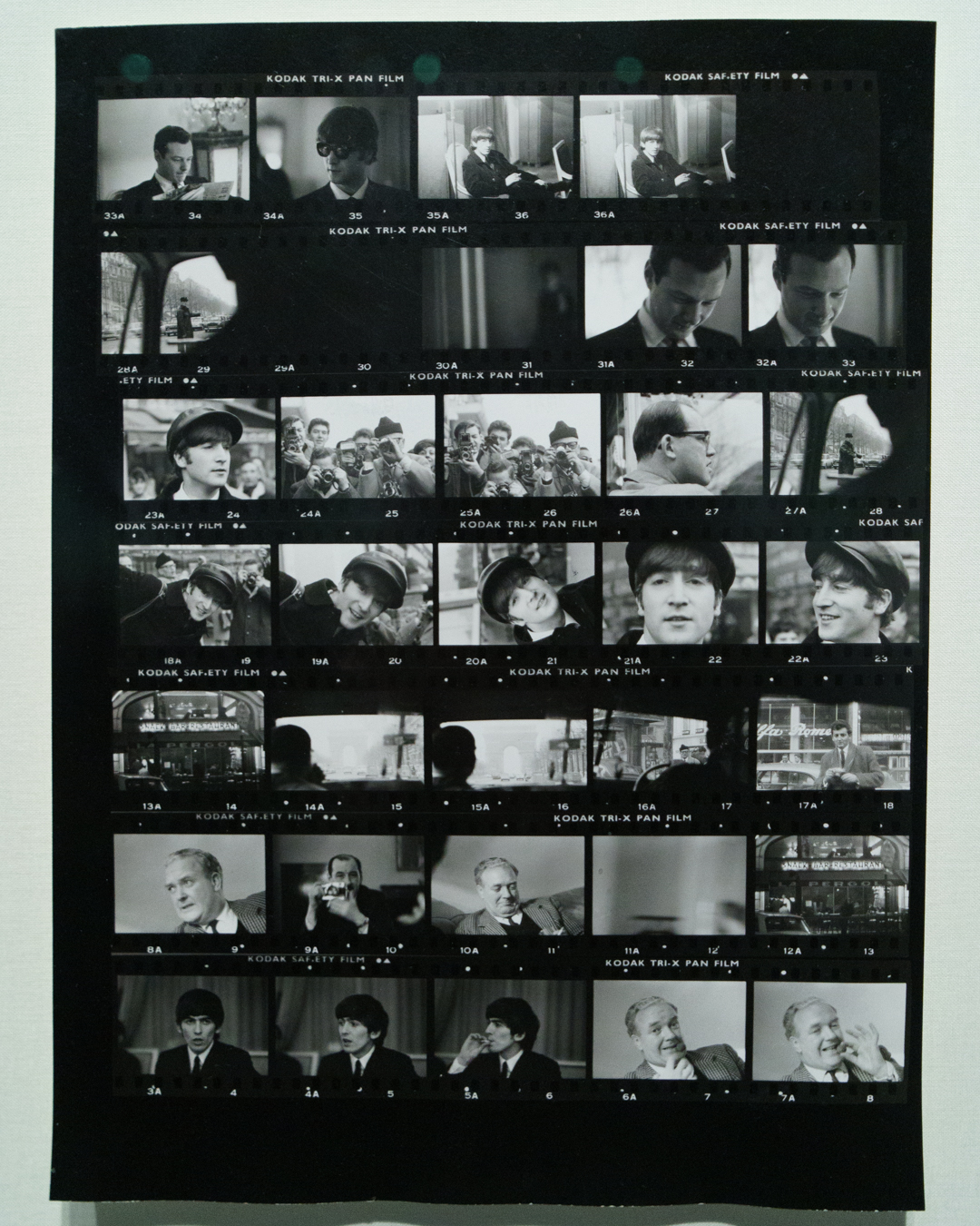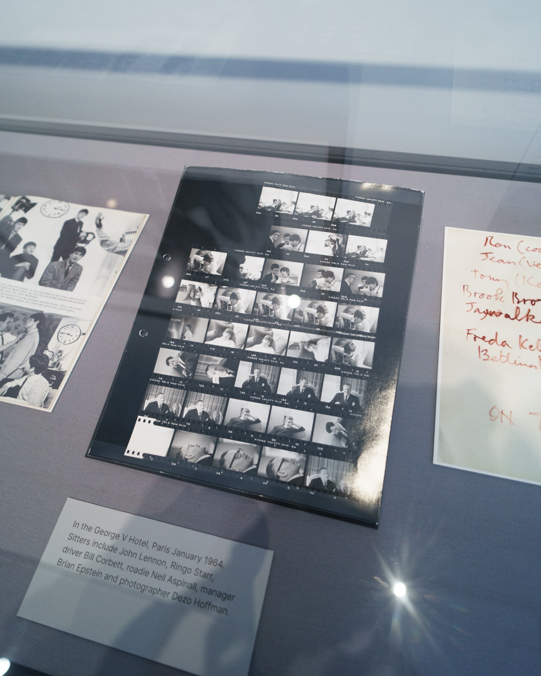 Part of the appeal is also seeing the original contact sheets. There aren’t many, but the ones on display offer a sense of chronology and storytelling. From candid photos of colleagues backstage or in hotel rooms, to the wild reactions of fans and paparazzi in the streets of Paris and Miami. Even though 60 years has passed, you feel like you’re part of the crew, travelling with them as they performed at the London Palladium and The Ed Sullivan Show.