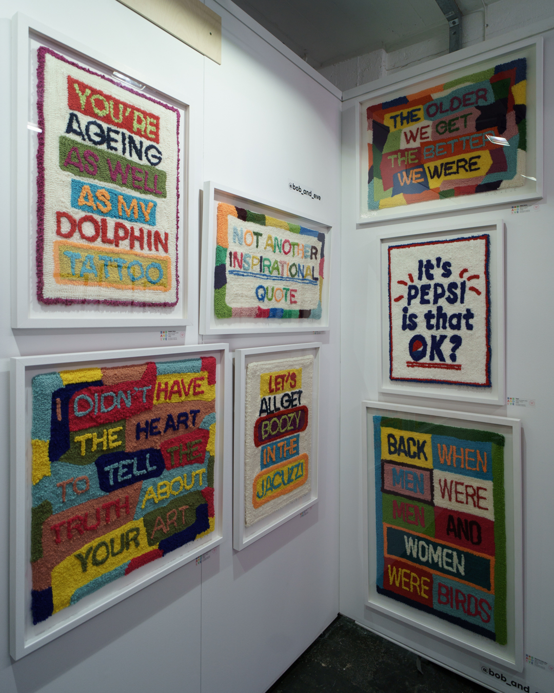 If you’ve lived in Britain for any amount of time, you can relate to the hilarious messages found on Bob & Eve‘s textile works (@bob_and_eve, stand 144).