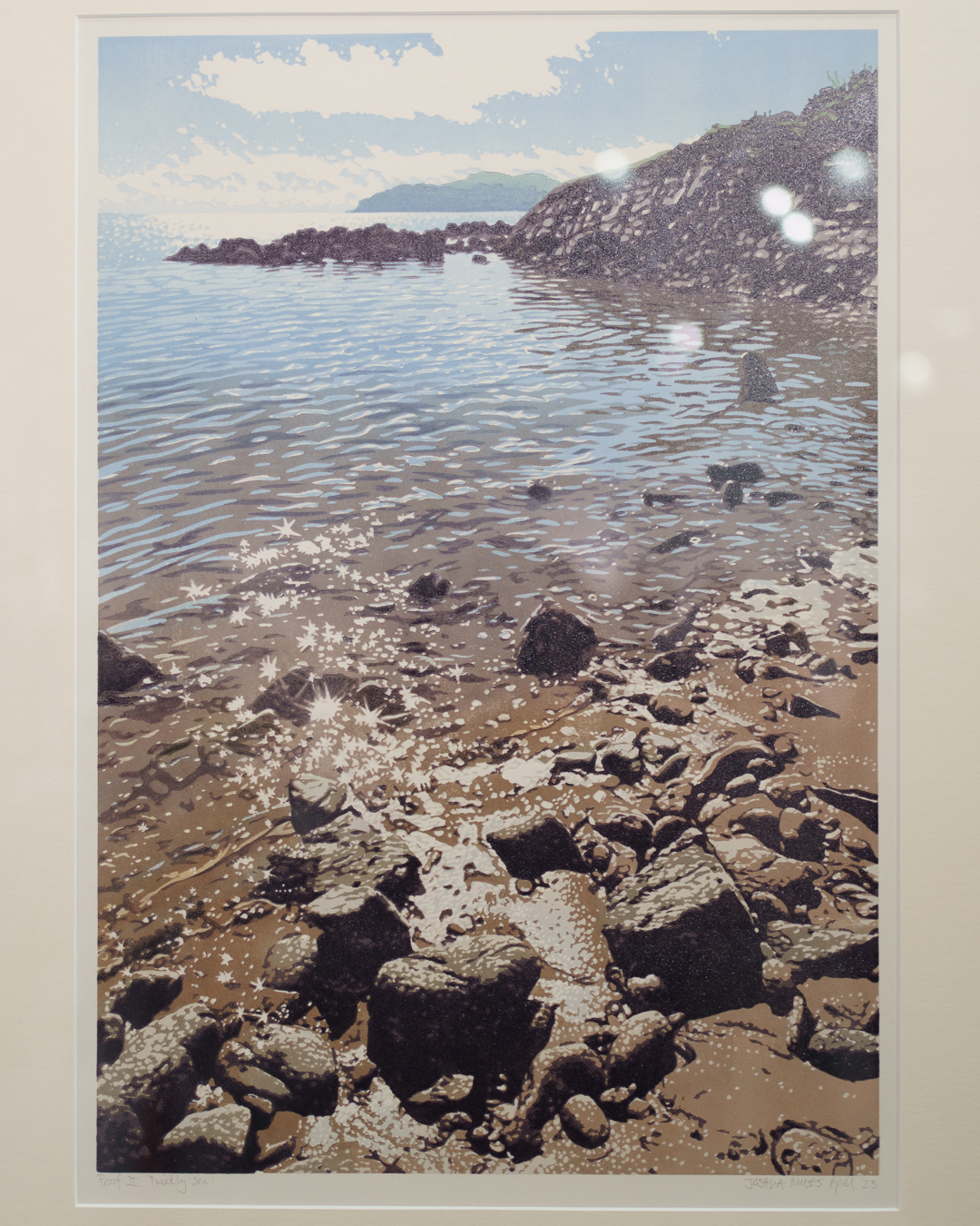 Joshua Miles, Twinkly sea, 2023, linocut (@joshua_miles_artist)