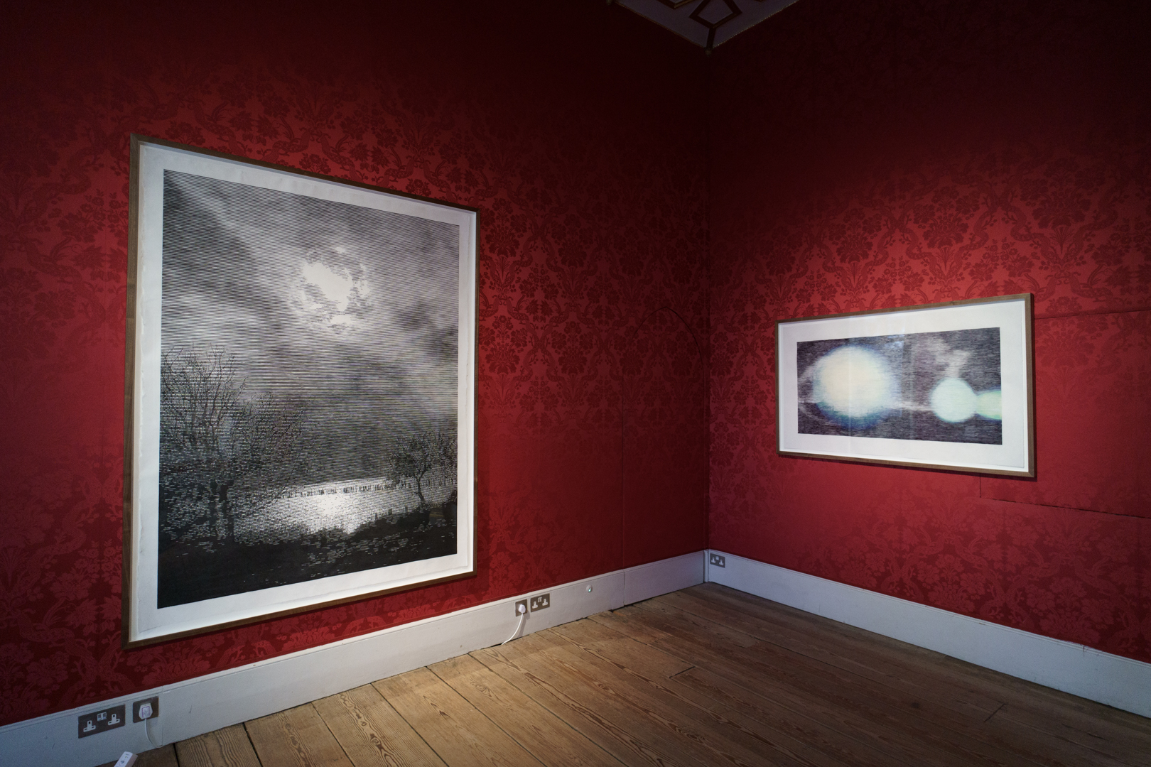 Meanwhile, the Baumgartner woodcuts get a separate showcase in the Great North Bedchamber. As a German printmaker herself, her large woodcuts derive from video stills, both exploring the passing of time and continuation of the world’s oldest printmaking technique. Some of her nature-inspired pieces resonate well with the setting of Walpole’s residence, once surrounded by forests and greenery with a view of the Thames.