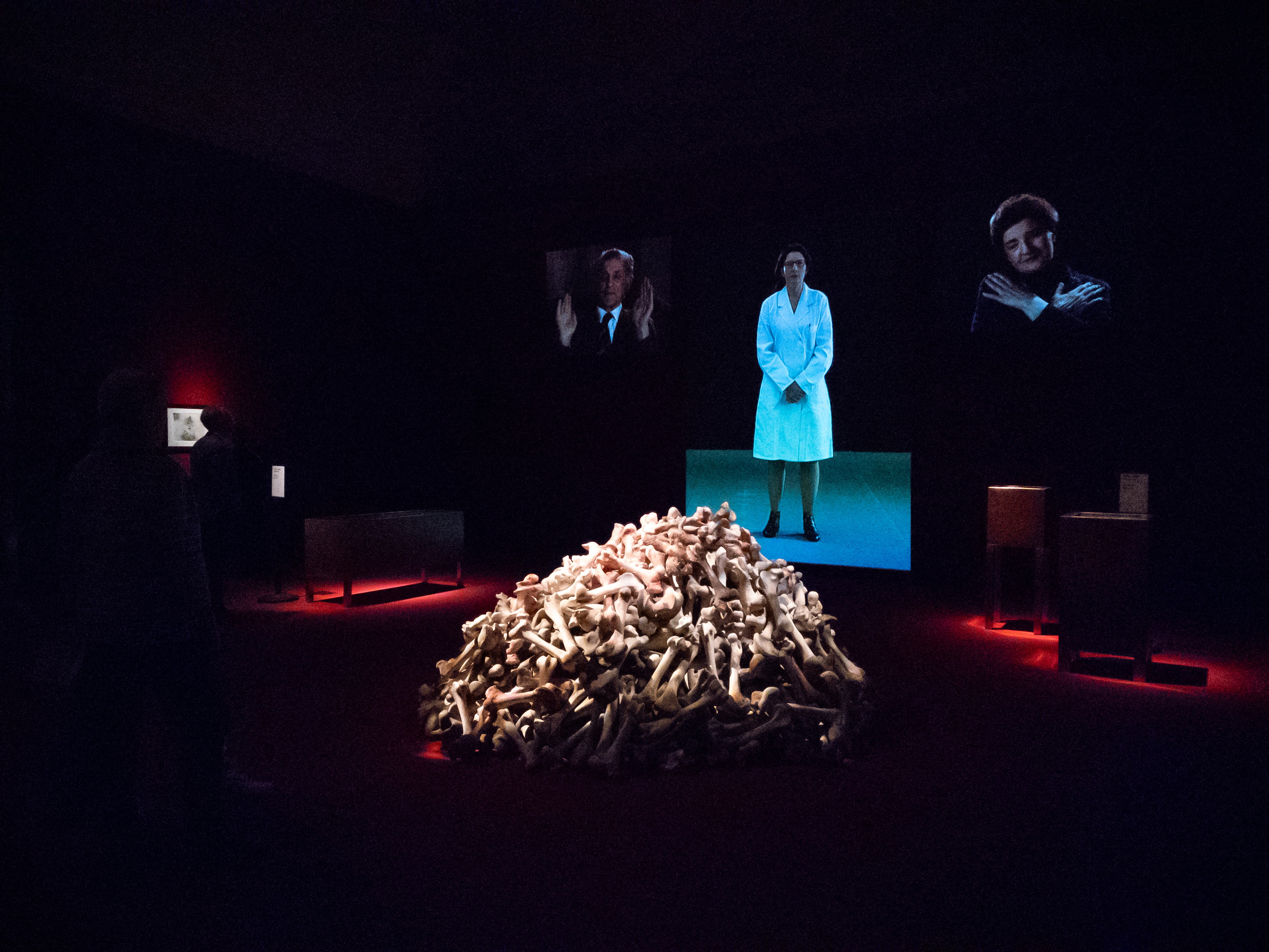 The exhibition presents quite a concise overview of Abramović’s groundbreaking performances, predominately represented by recorded footage, stills, props, and installations. At various points in one’s visit, live performances are re-enacted by her students.