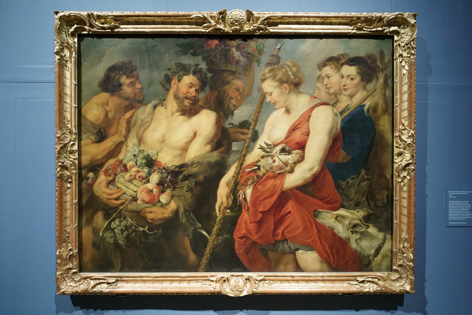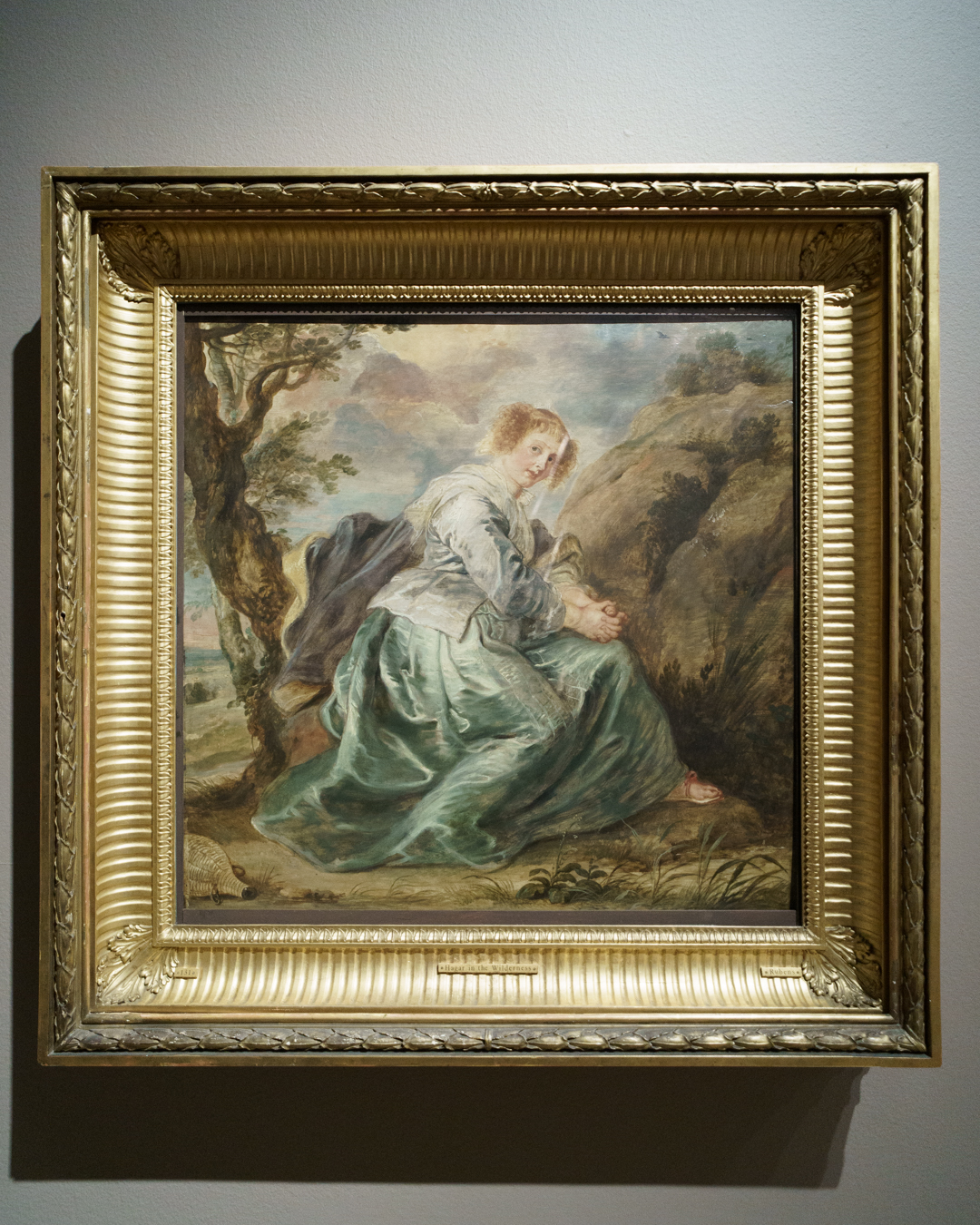 Through Isabella Brant and Helena Fourment – his first and second wives, respectively – Rubens found in reality his fictive Venus. Although his model of ideal beauty was rooted in classicism, classicism turned out to be closer to real life in Rubens’ circle, complete with wrinkles, stretch marks, and cellulite. Life drawing dictated much of the artist’s practice, and he never neglected the power of portraiture. His wives and daughter Clara frequently appear in his paintings; the first room introduces us to their likenesses in a section juxtaposing his informal and formal portrait types. That of Marchesa Maria Serra Pallavicino is a stunner.